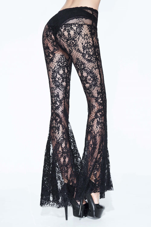 The whole piece is made of micro elastic lace embroidered fabric, and the front rise is appliqued lace and decorated with bead chain.