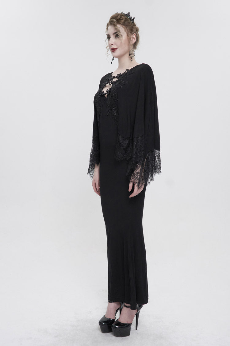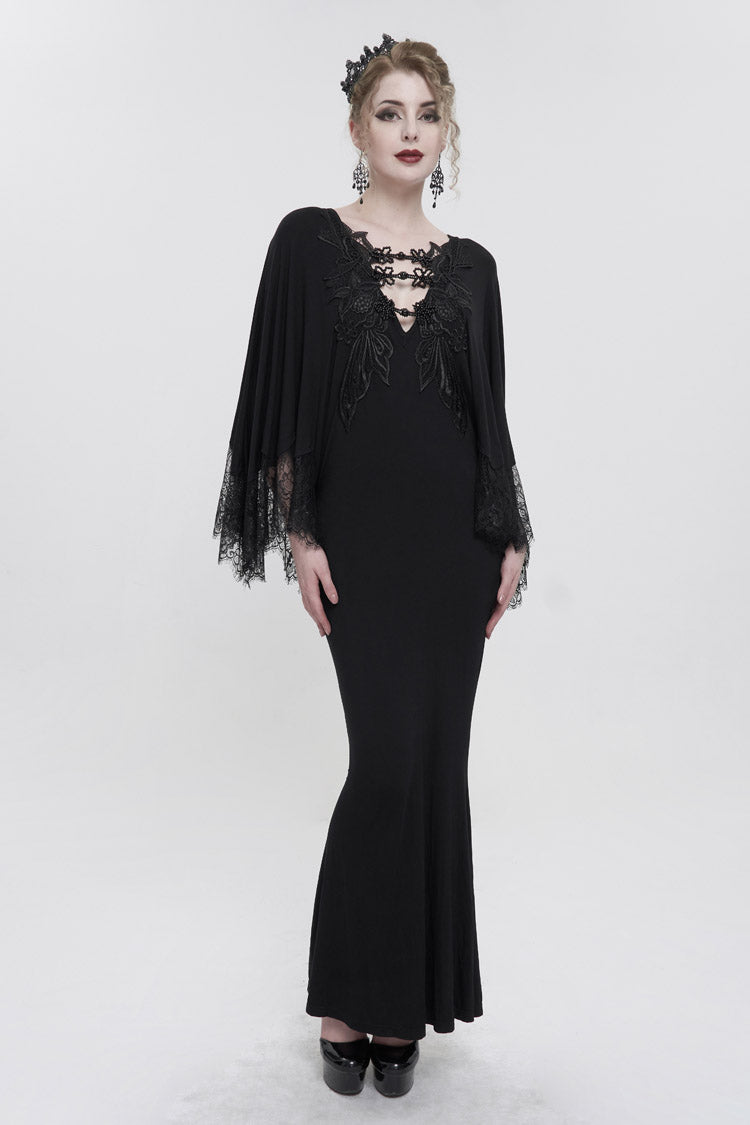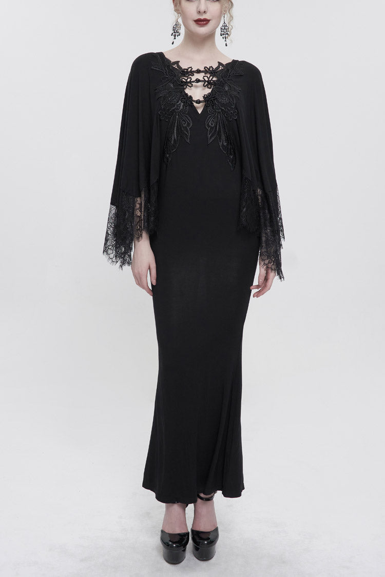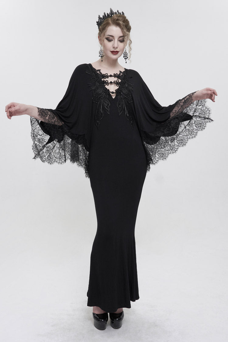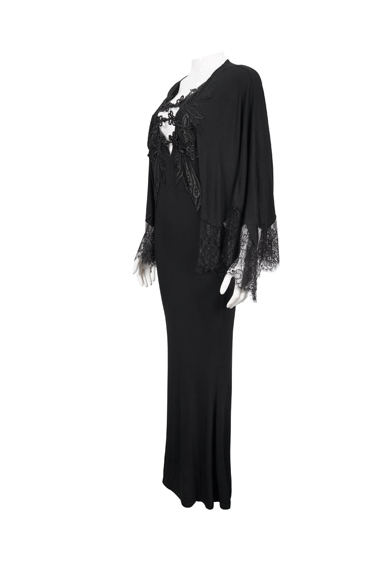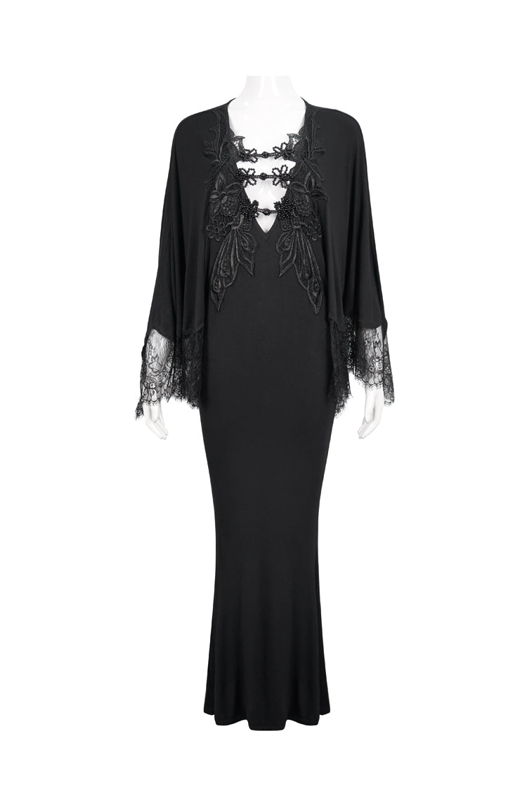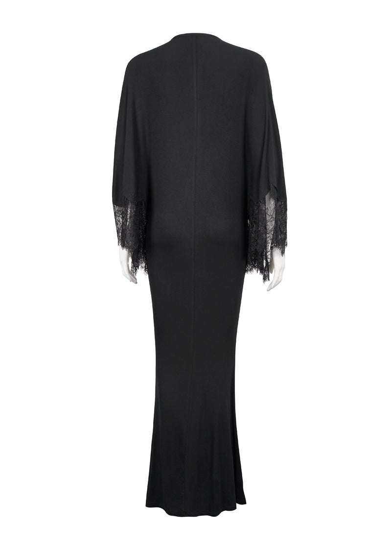 The whole piece is made of modal fabric with good elasticity and breathability, with a deep V design, lace appliqued on the chest, and is connected with a beaded disc button, which can be opened, and the cuffs are stitched with delicate eyelash lace. The upper body is wide and the lower body is designed with a small fishtail, which can hide meat without looking bloated.