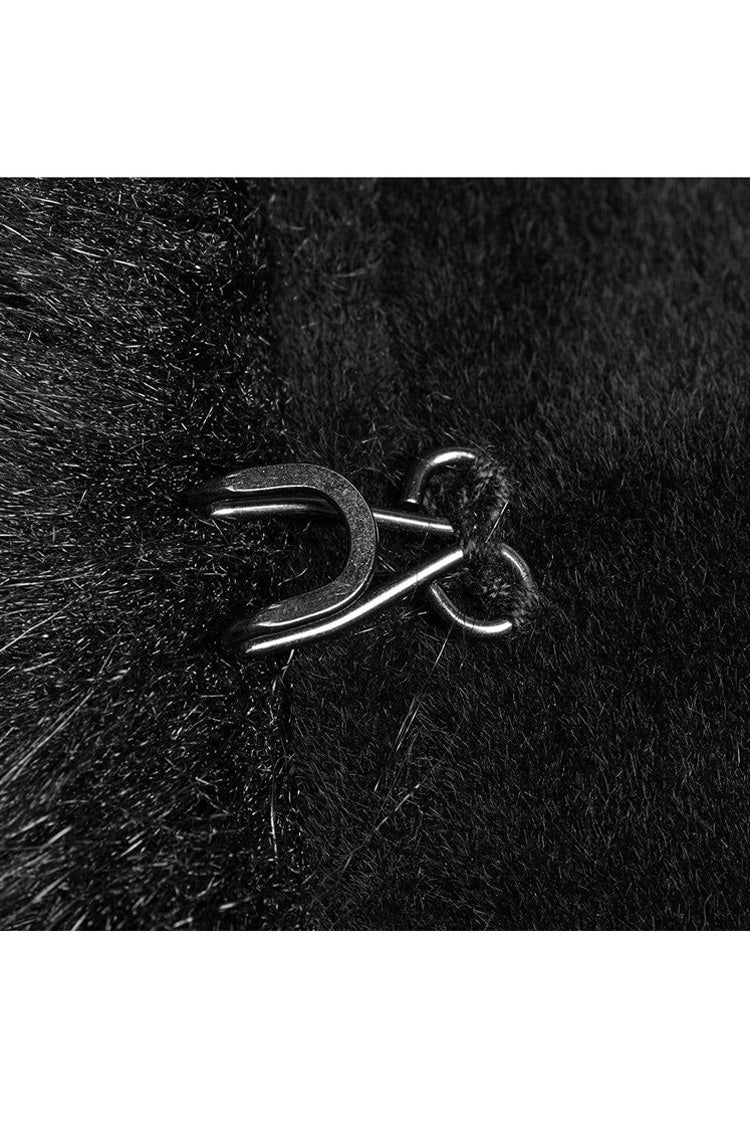 1.The main fabric using black imitation cashmere fabric, imitation furry strips on the front center.