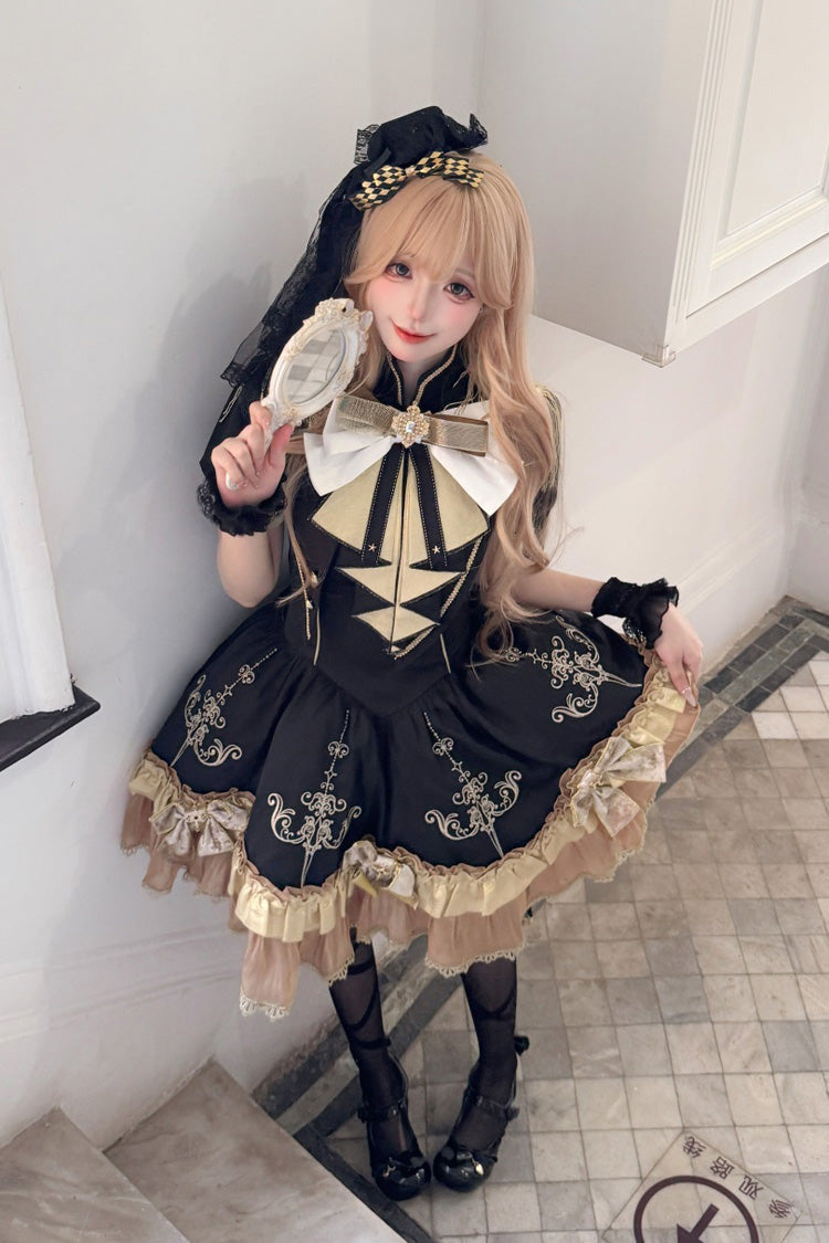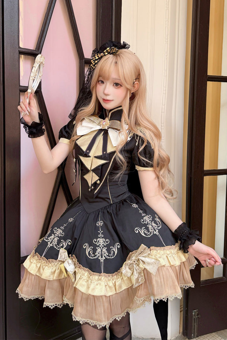 Feature: Double-Layered, Ruffle, Embroidery, Bowknot