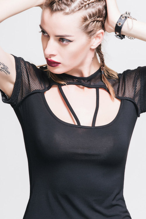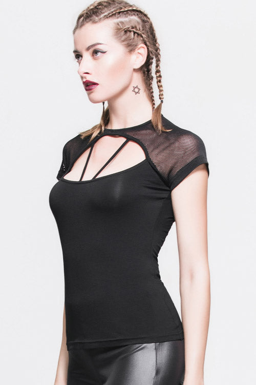 The whole piece is made of all-around knitting material with good elasticity, designed as a fake two pieces combination of mesh small short-sleeved shawl and camisole. The back rope can be adjusted.suitable for daily wear.