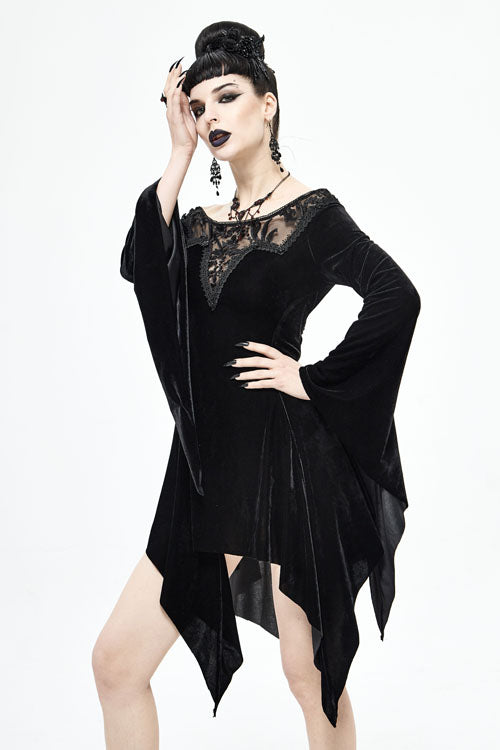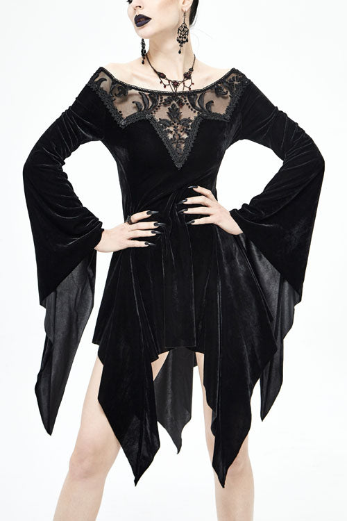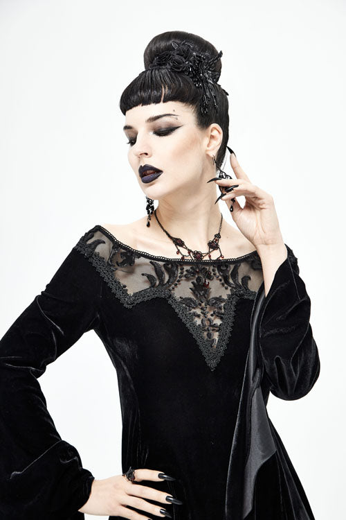 The main material is dense velvet, the chest is designed for positioning flower fabric,daily life gothic dress flat shoulder design.