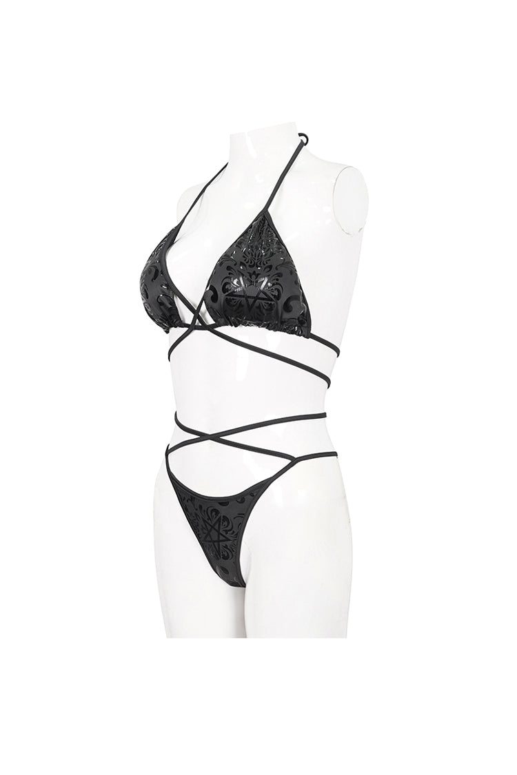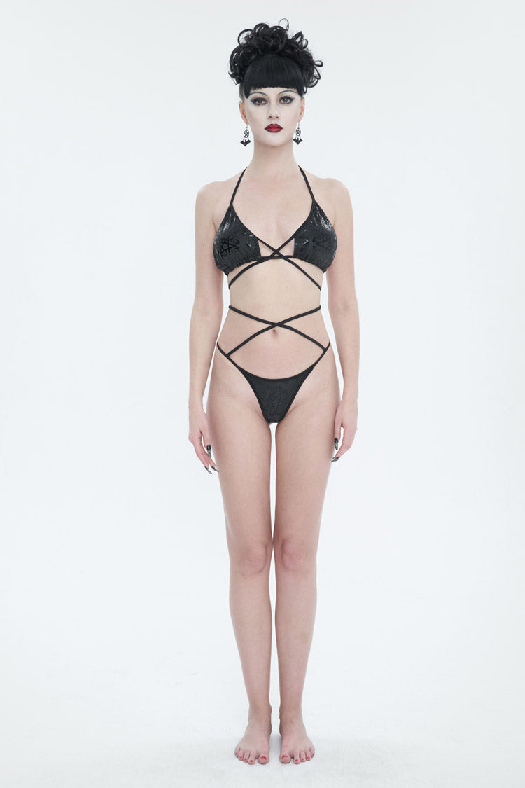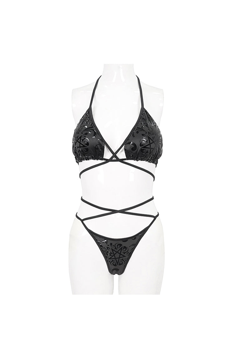 1. The whole piece is made of pentagram Gothic pattern printed swimsuit material.