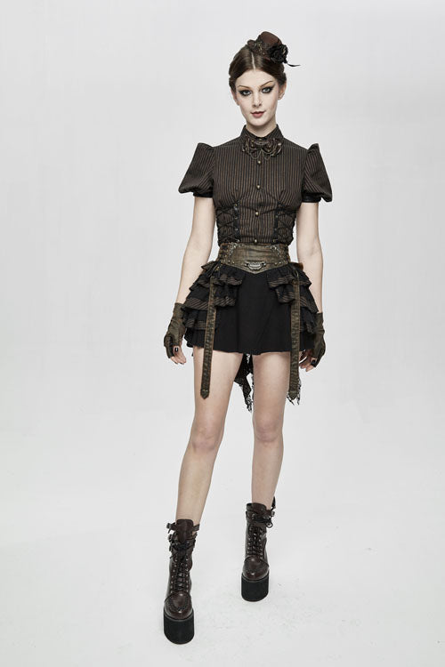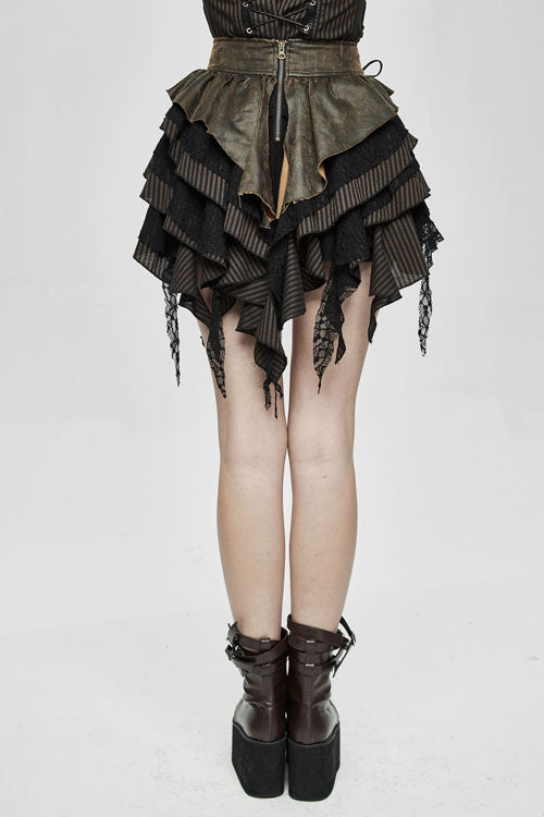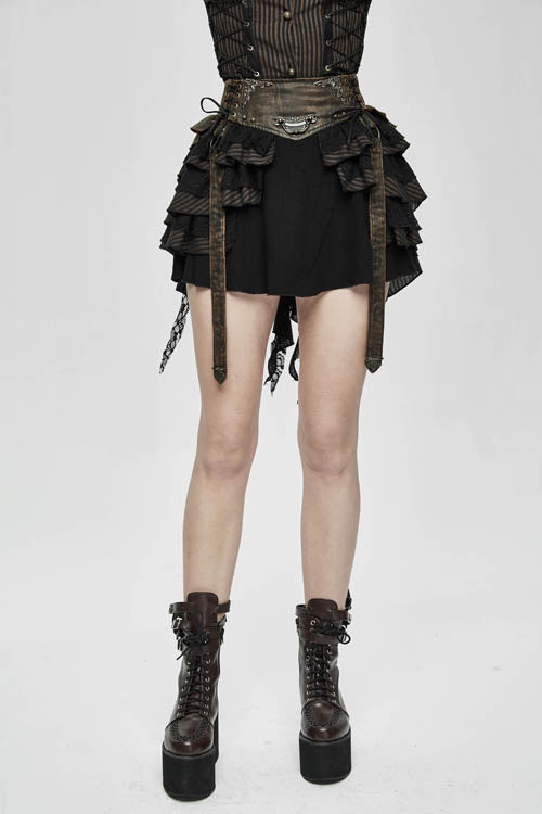 3. Center back metal zipper design, front waist with a variety of metal matching, skirt body multi-layer wavy edge stack-up.