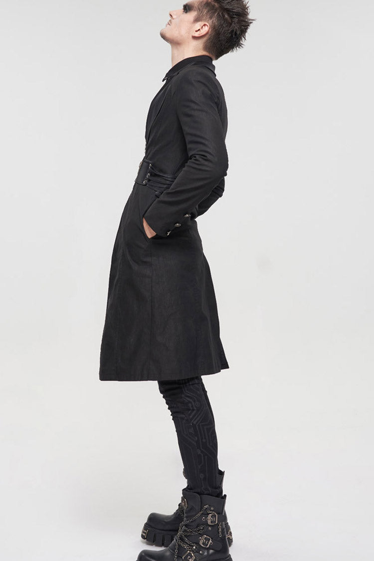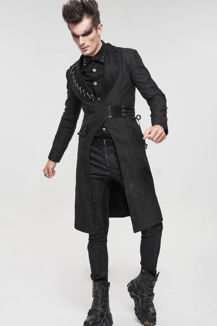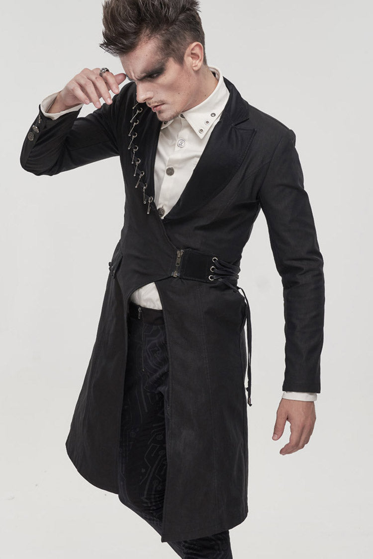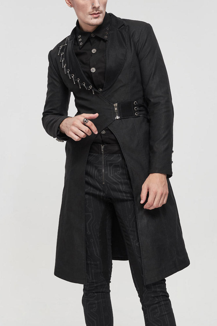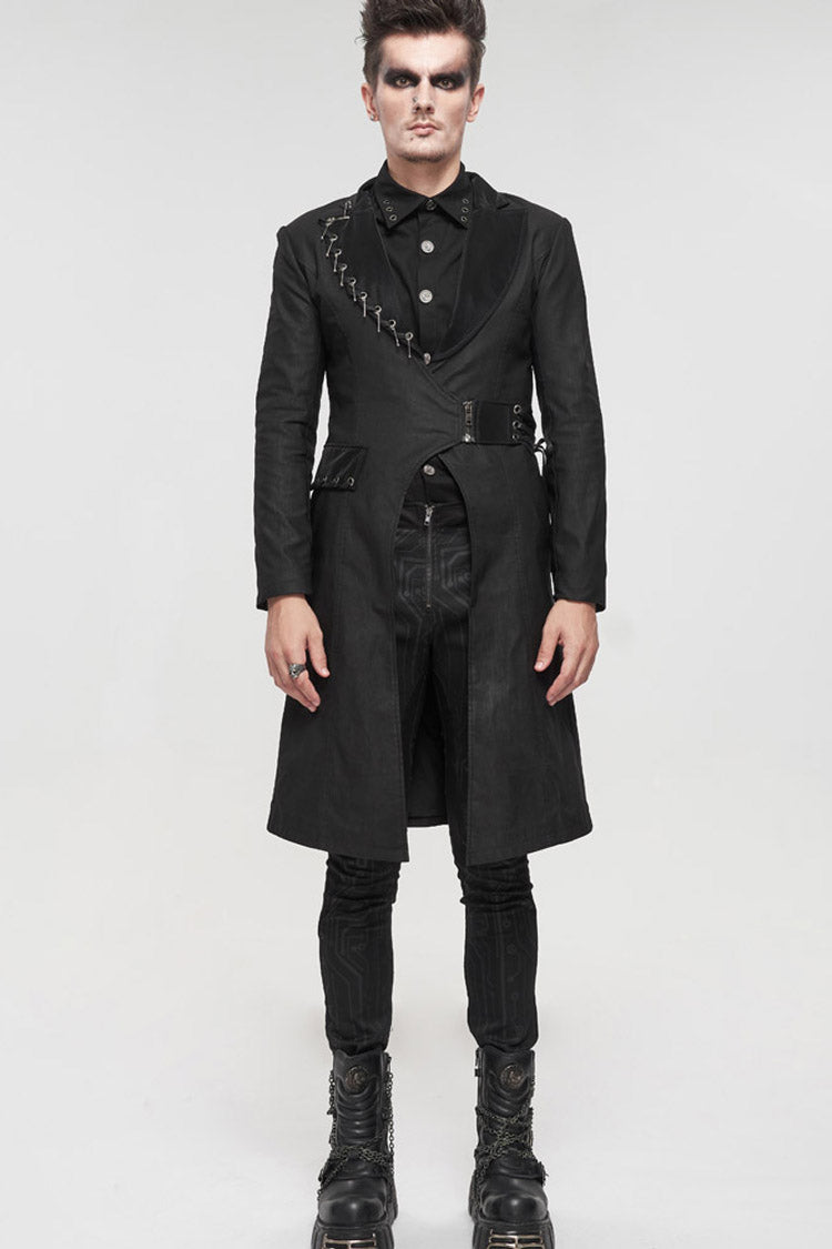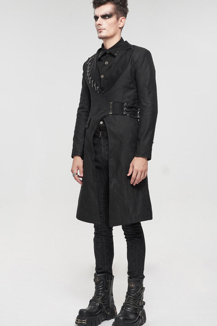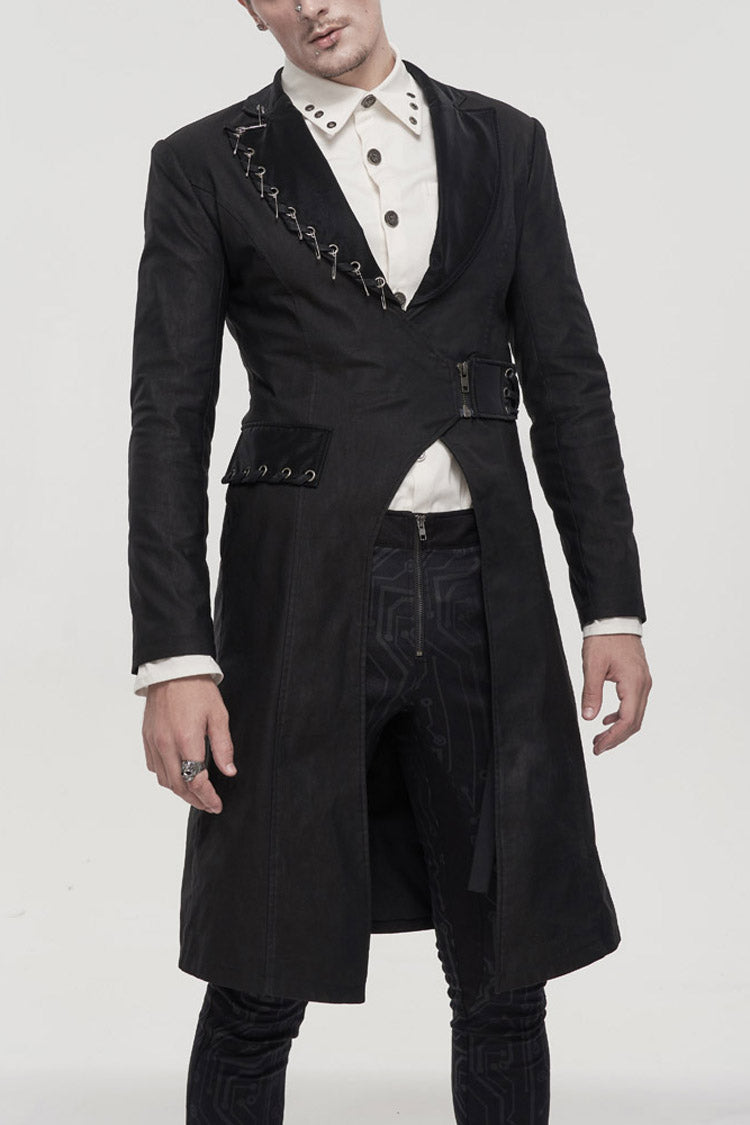 The main fabric is made of micro-elastic twill woven material, stitched with super black twill imitation leather. Slim fit. The collar and the right pocket are spliced with faux leather, metal eyelets are added with old wax ropes, and large metal pins are decorated. Drawstring decoration on the side. Side pocket design.