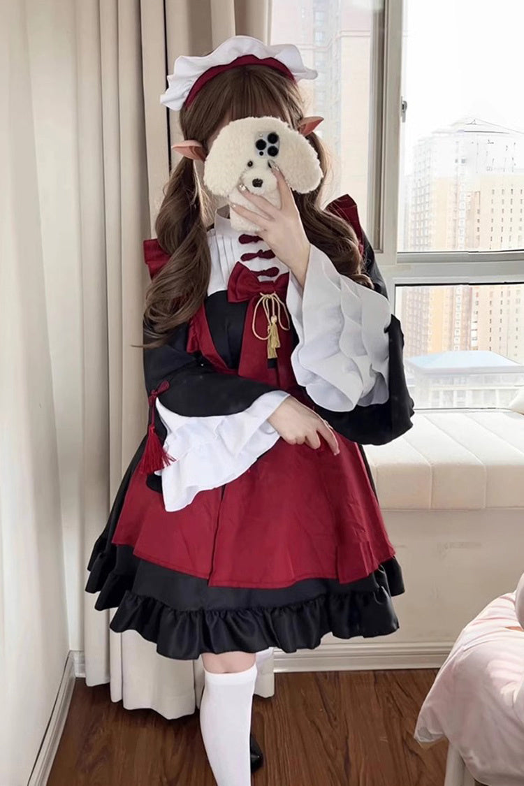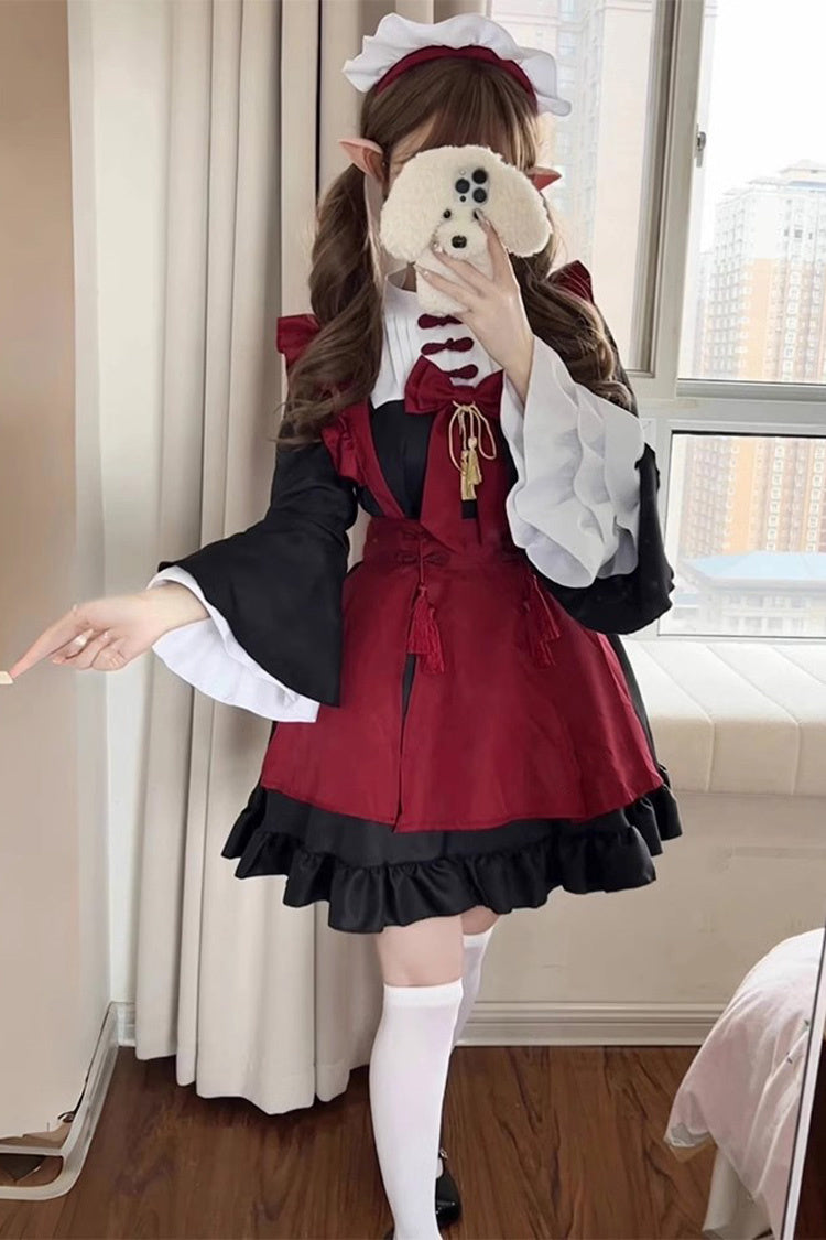 Include: Dress + Apron + Headdress + Bow + Tassel + Hair Bag + Socks + Petticoat