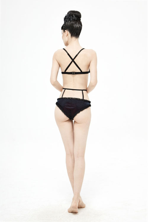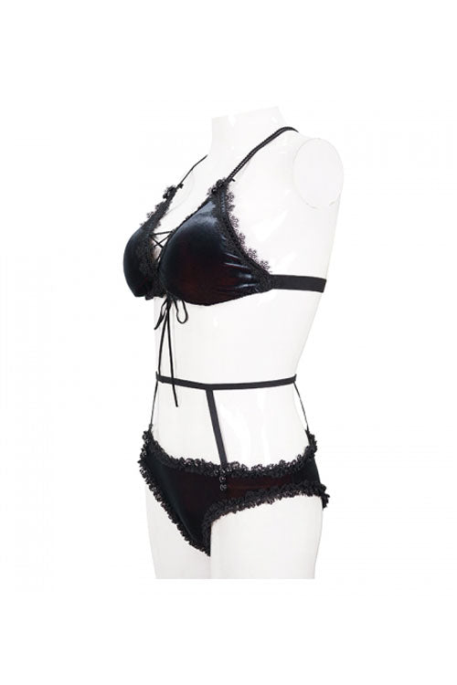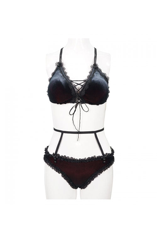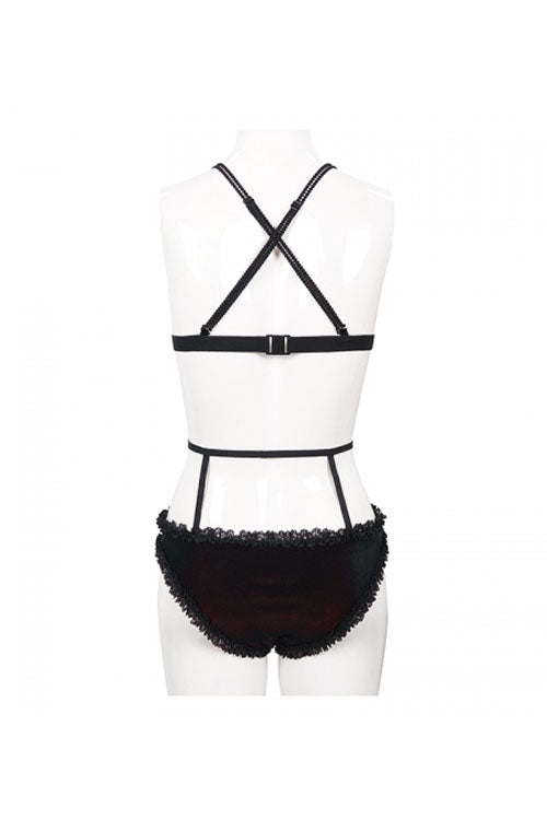The main fabric is black and red velvet fabric with lace stitching decoration. The front middle strap can be opened. The chest cotton can be removed to make a sexy underwear suit.