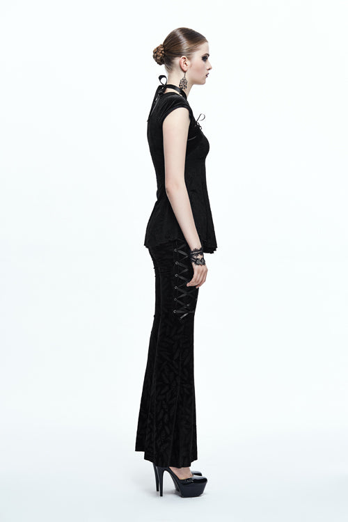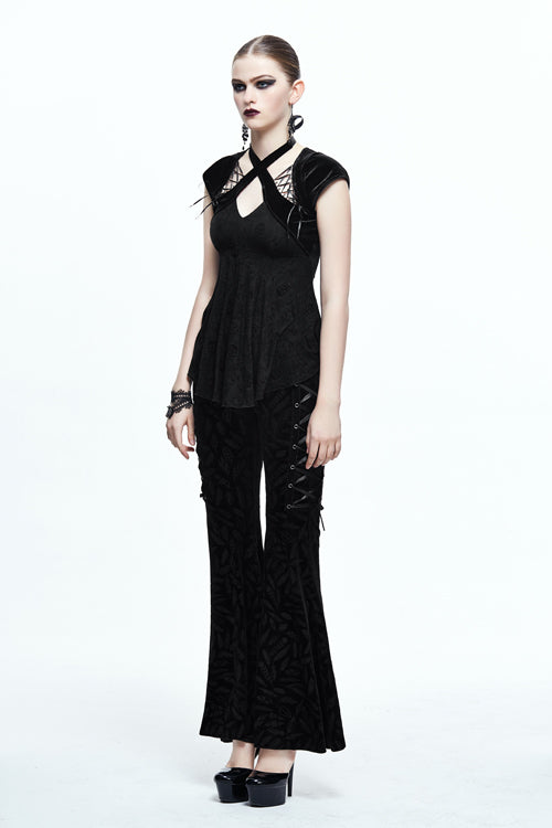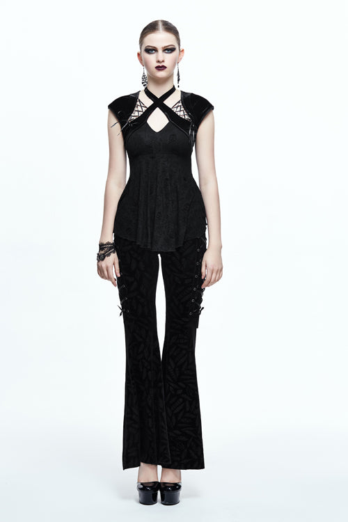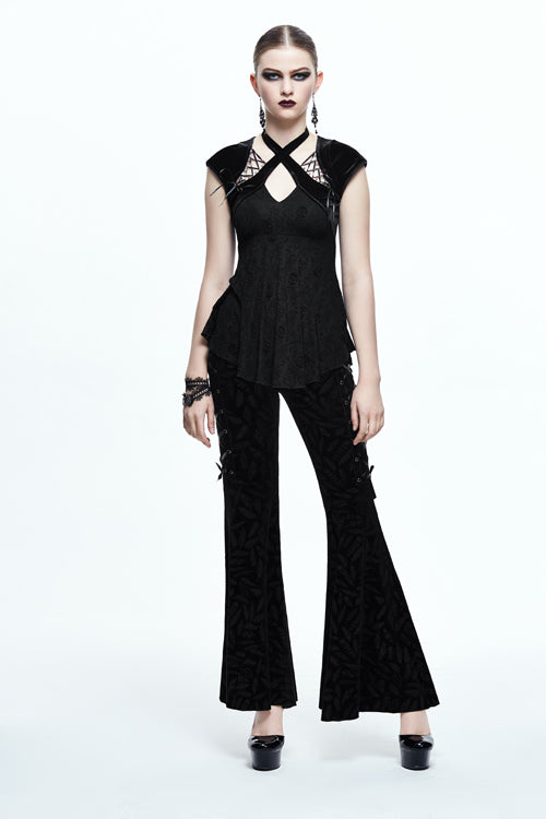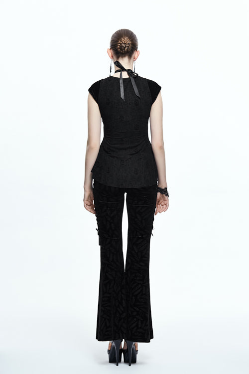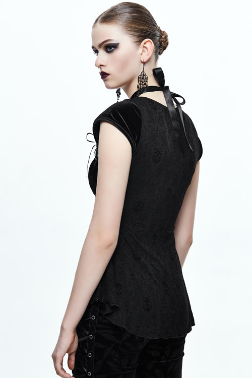Good elasticity skull pattern flocking fabric stitching dense velvet, chest belt around the neck and tied,the hem made as a skirt, can cover the underbelly.