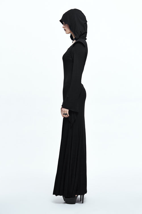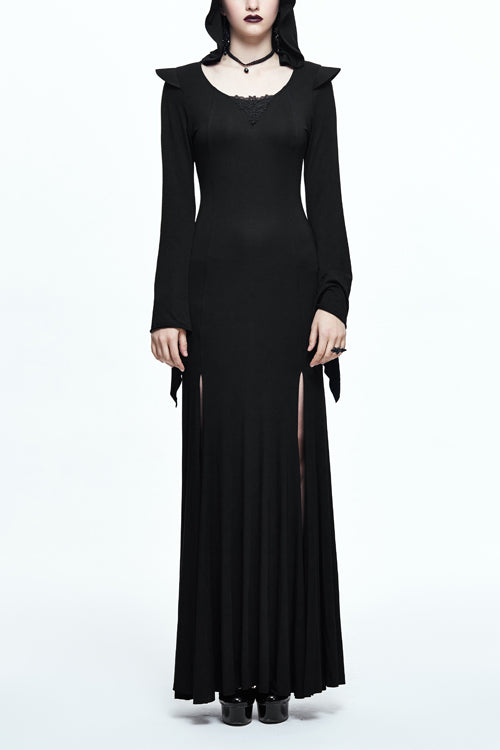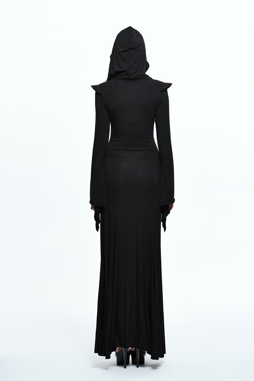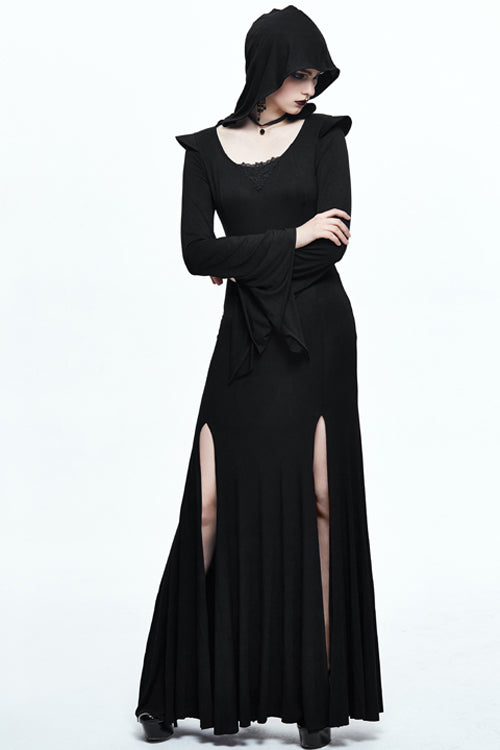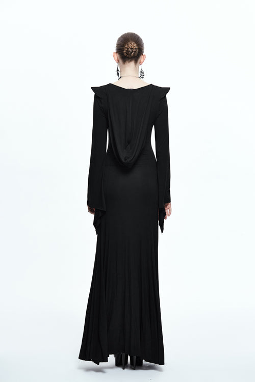The whole piece is made of 40 pieces stretchy Modal fabric, which is designed into a fishtail skirt with hooded flared sleeves,shoulder with hard liner, and middle collar with triangular lace.Suitable for everyday wear.