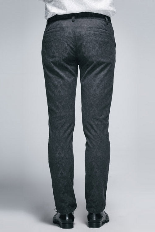 Micro elastic jacquard fabric to make the fitted classic style men trousers, stitched with braid at the side, suitable for daily and party wear in four seasons.
