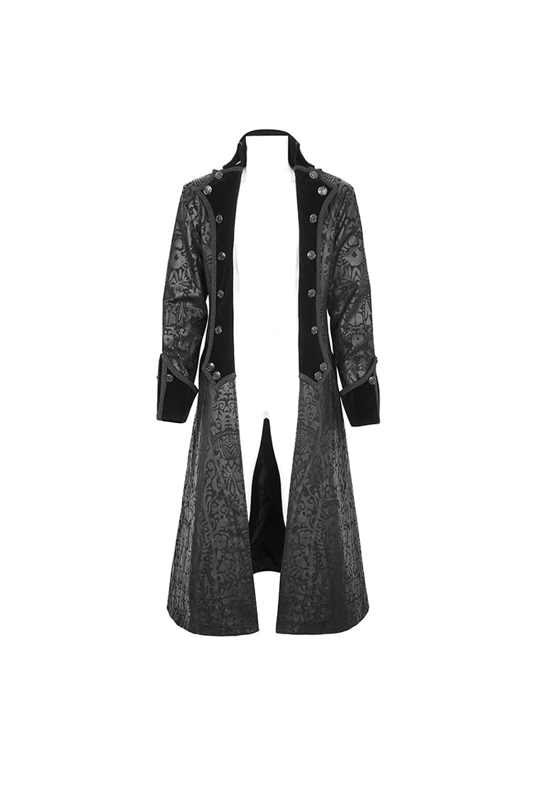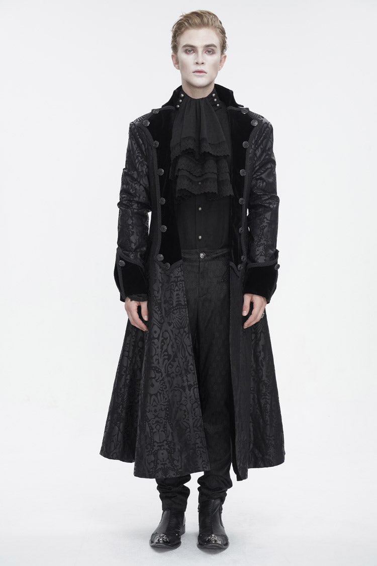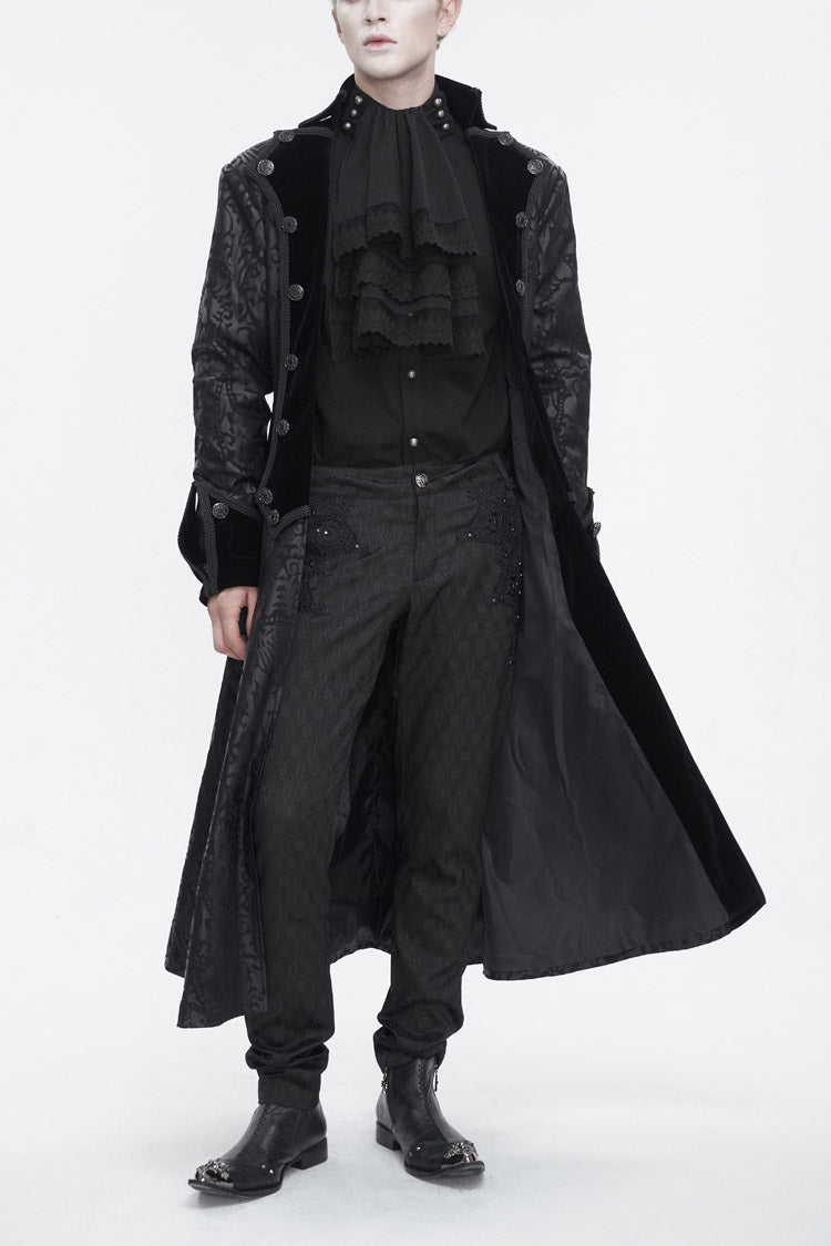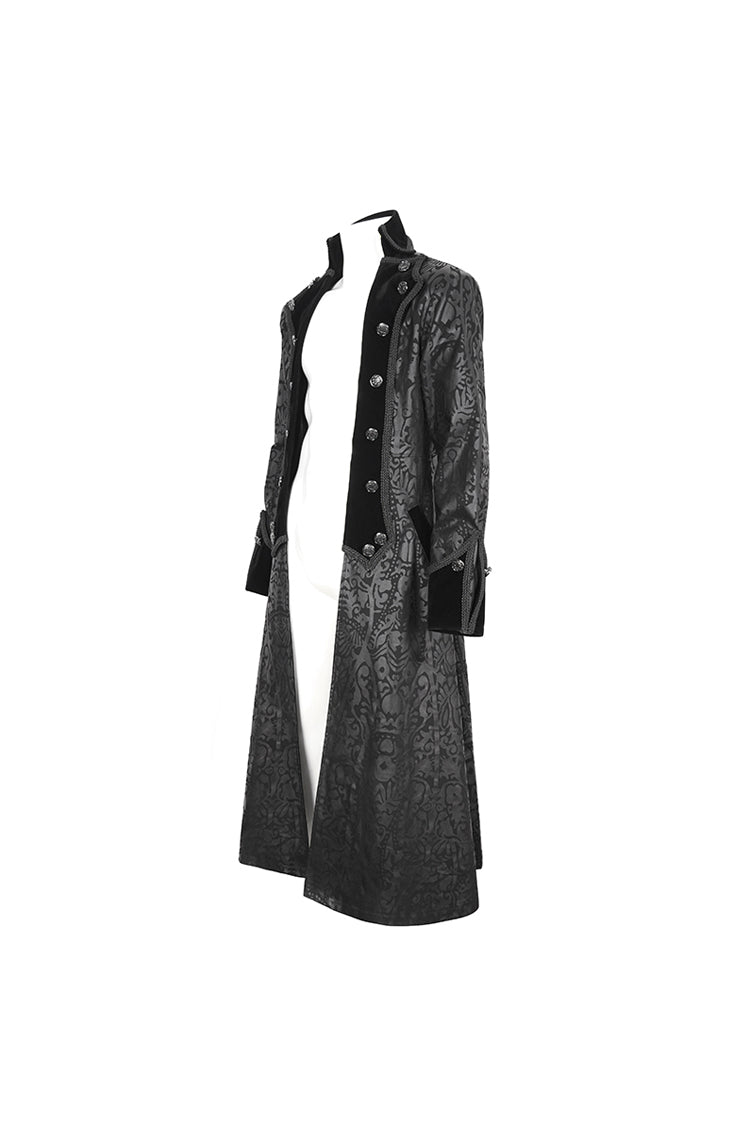 This gothic coat is patchwork with velvet fabric and braided hem on the neckline and cuffs. Stand collar and lapel cuffs. Exquisite button for decoration. No elastic fabric.