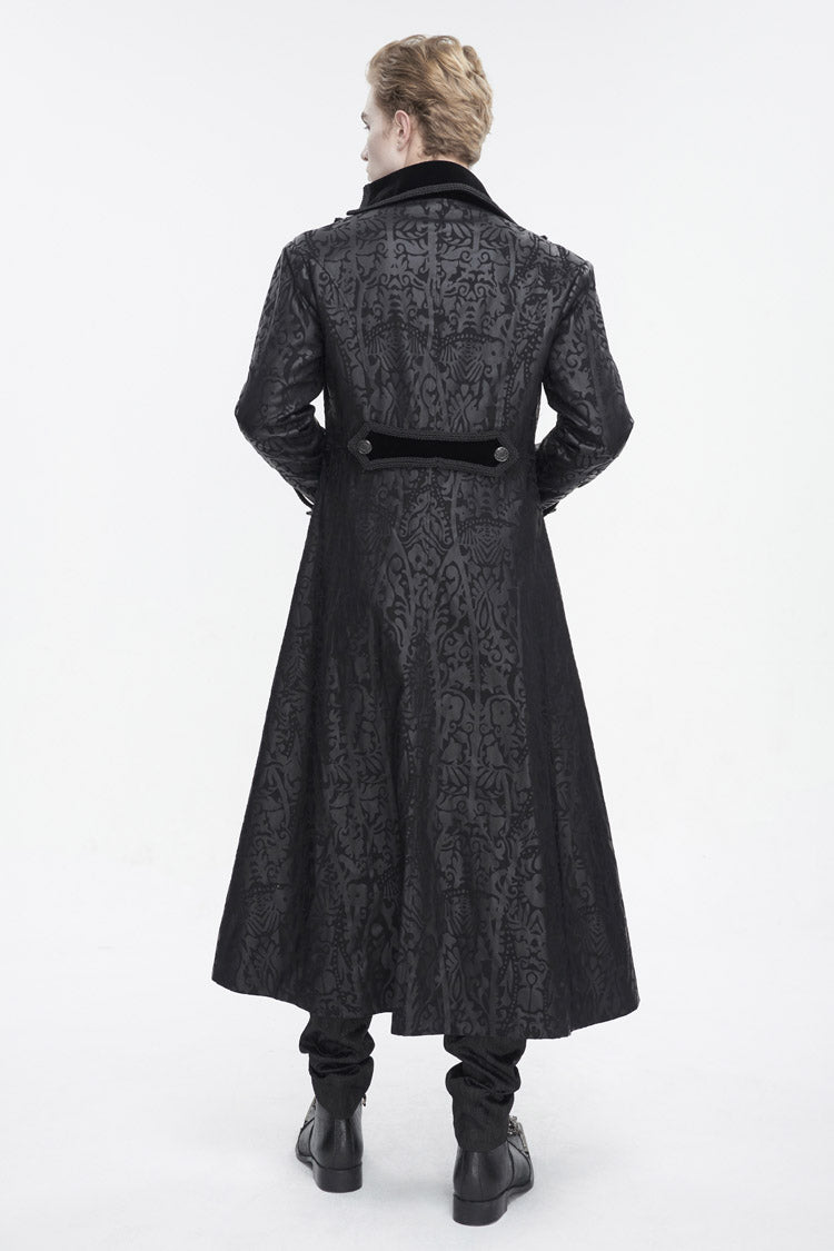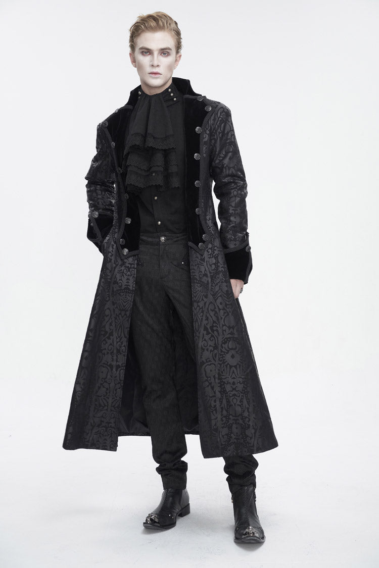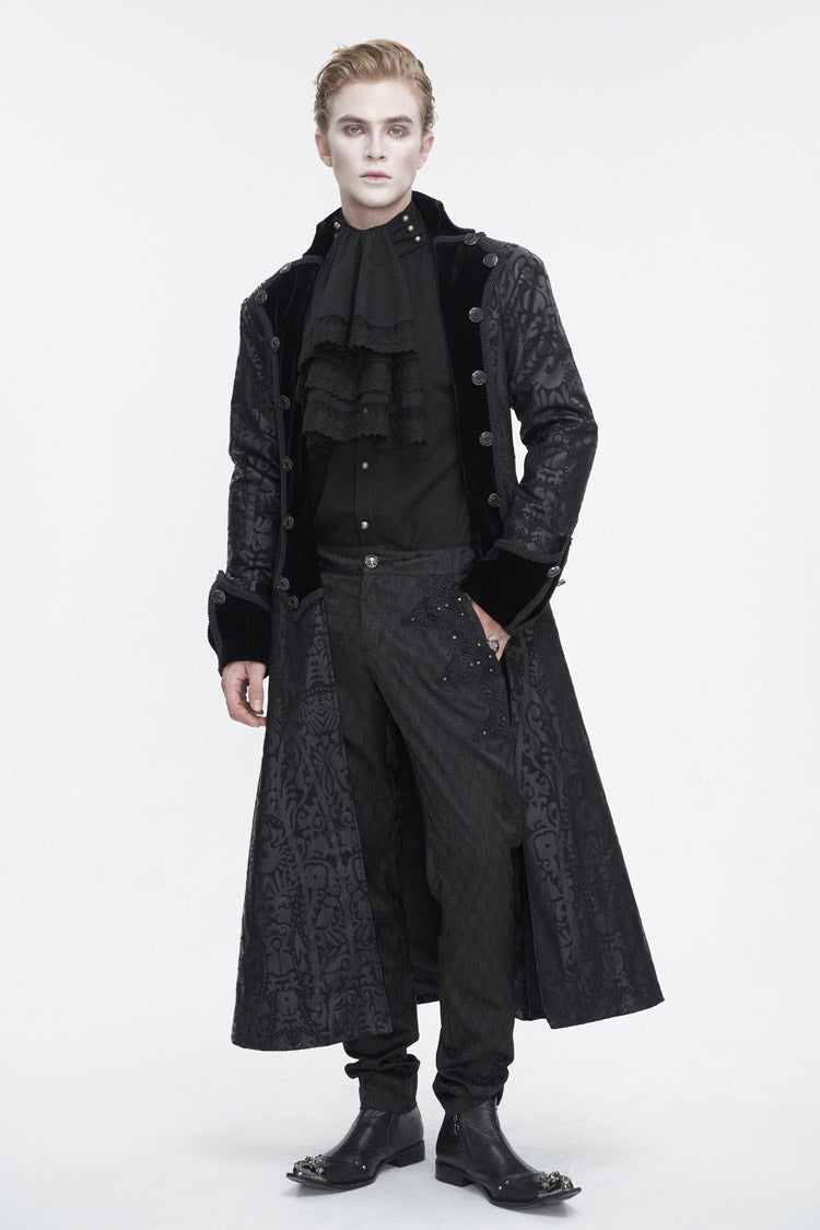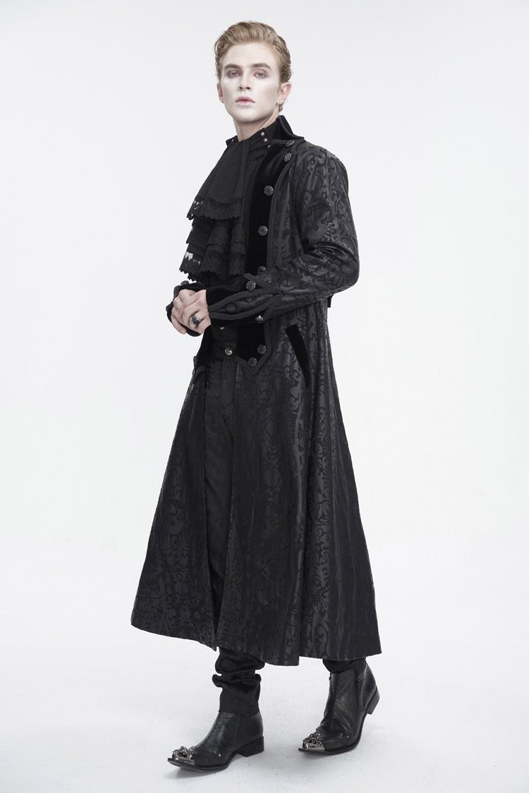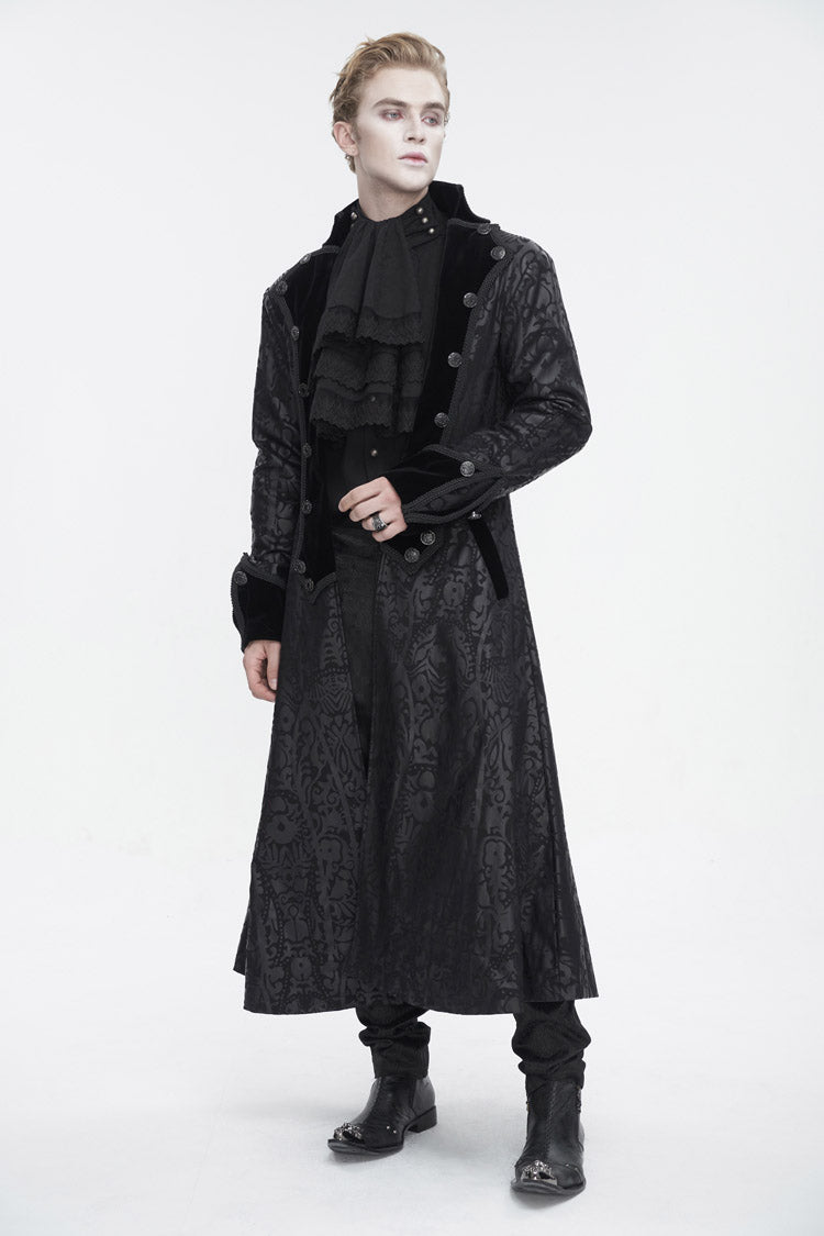 This gothic coat is patchwork with velvet fabric and braided hem on the neckline and cuffs. Stand collar and lapel cuffs. Exquisite button for decoration. No elastic fabric.