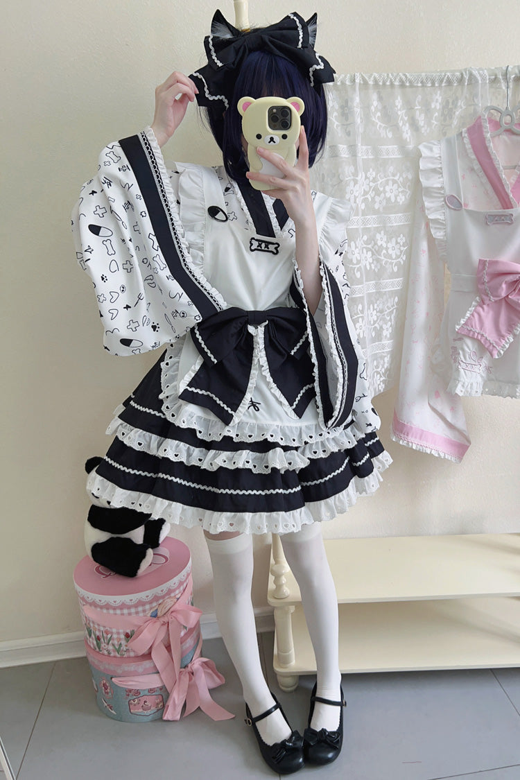 Include: Skirt + Top + Apron + Bowknot + Big bowknot at waist