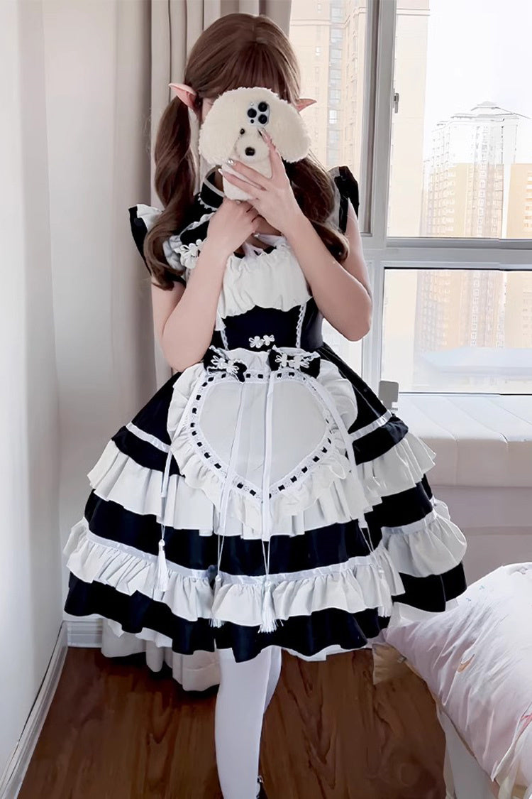 Include: Dress + Apron + Hair Accessories + Sleeves + Accessories + Socks + Petticoat