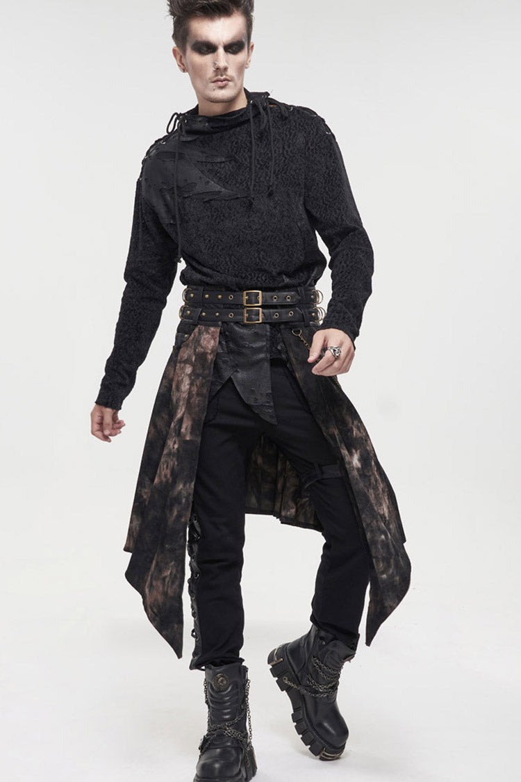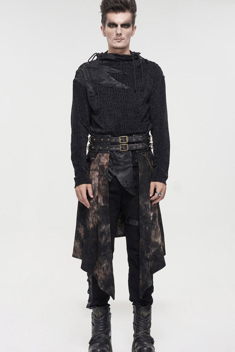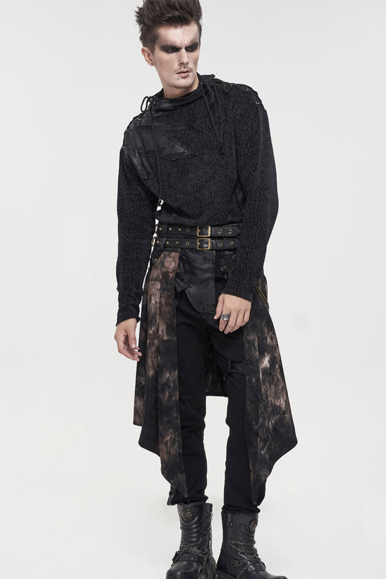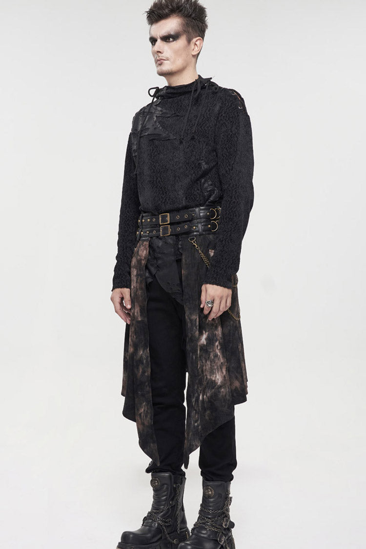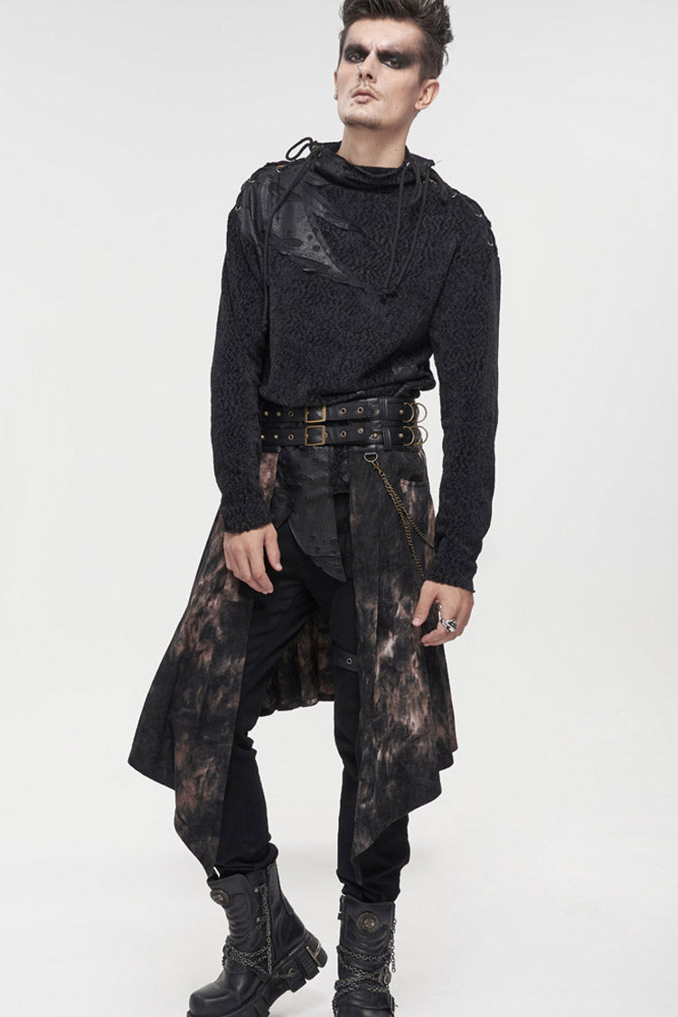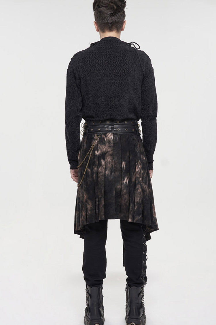 The main material is corduroy to tie the dye, the waist is combined with the leather material, all the auxiliary materials are bronze, and the false girdle design is used. Open pockets on both sides.