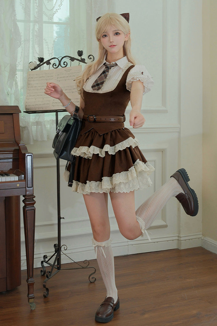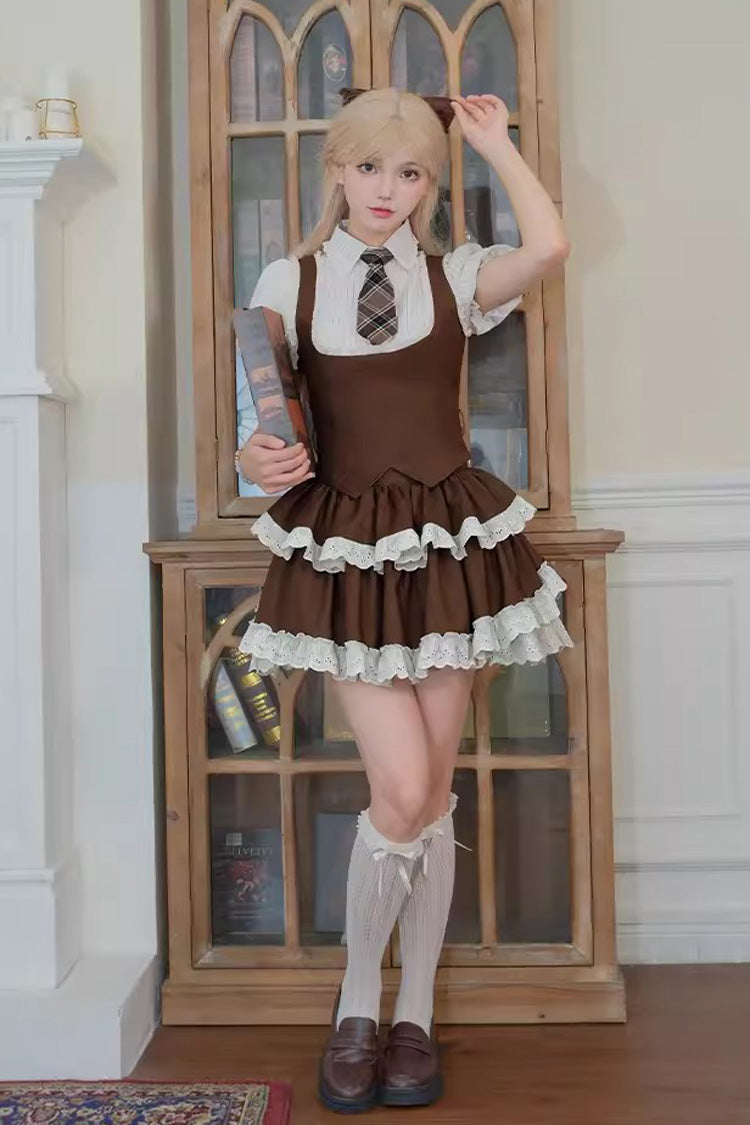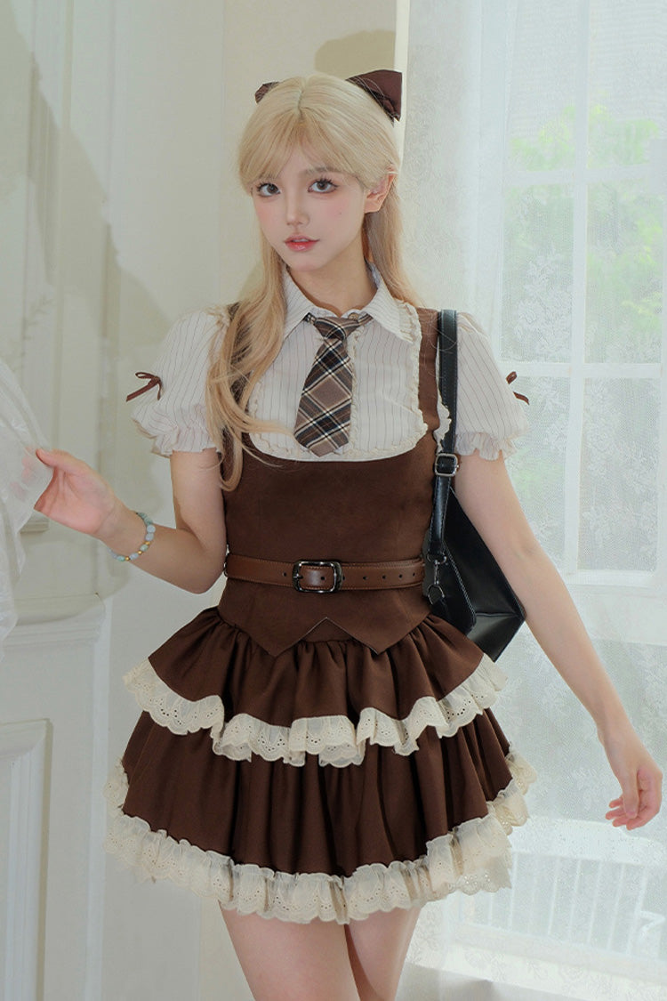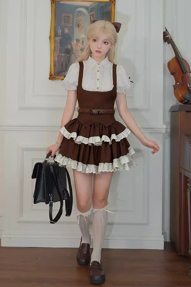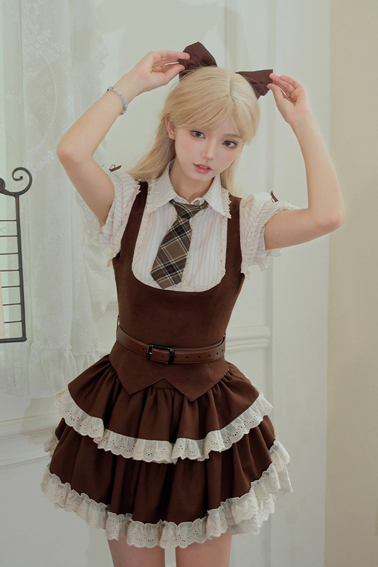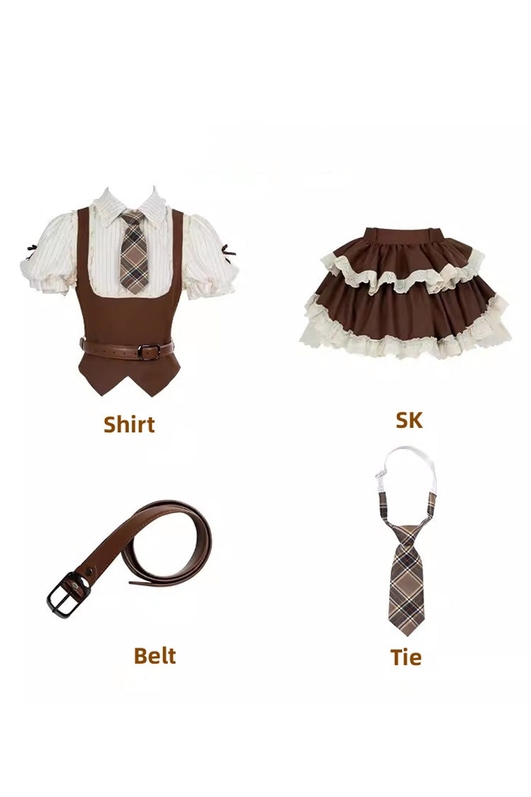 Include: Skirt + Fake two piece shirt + Belt + Tie
