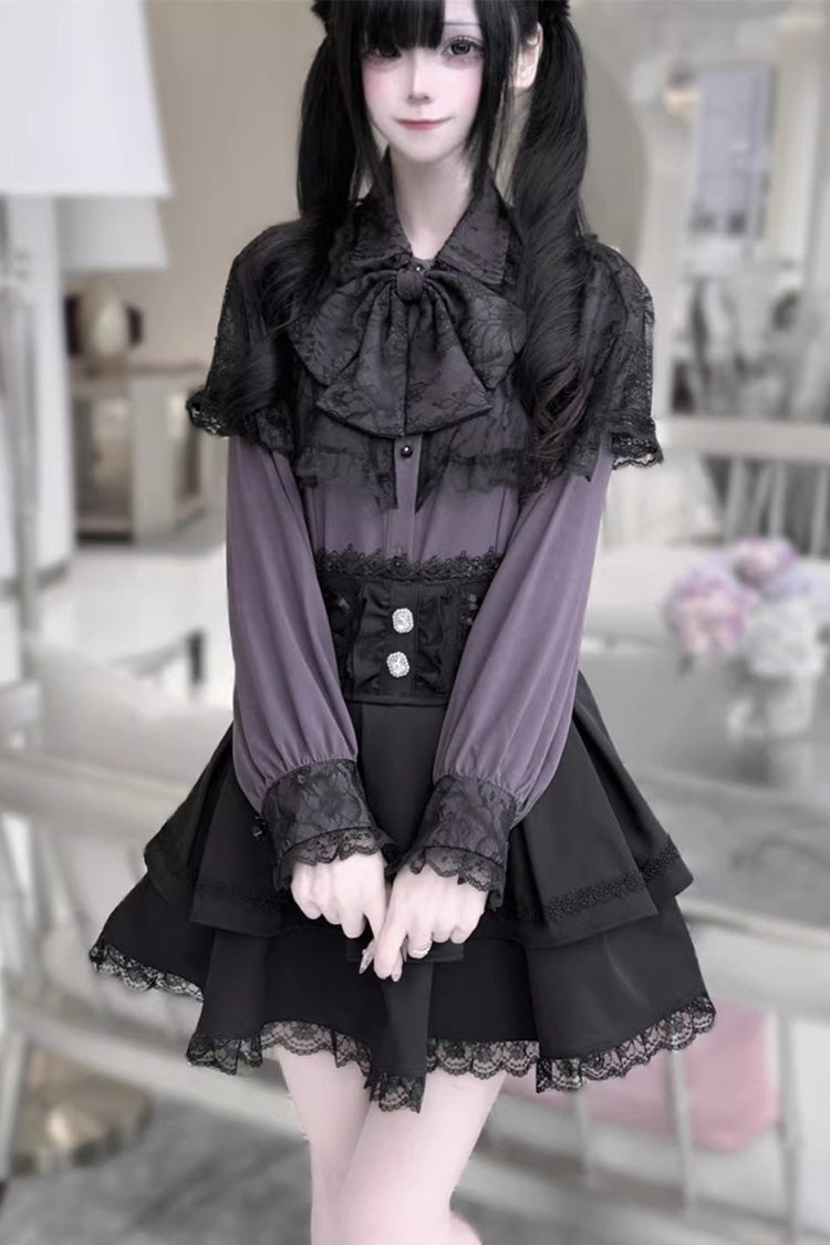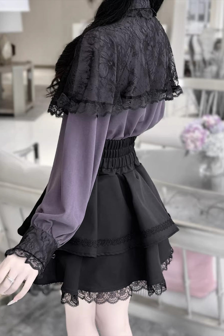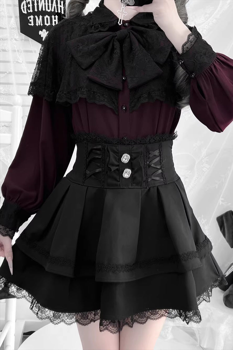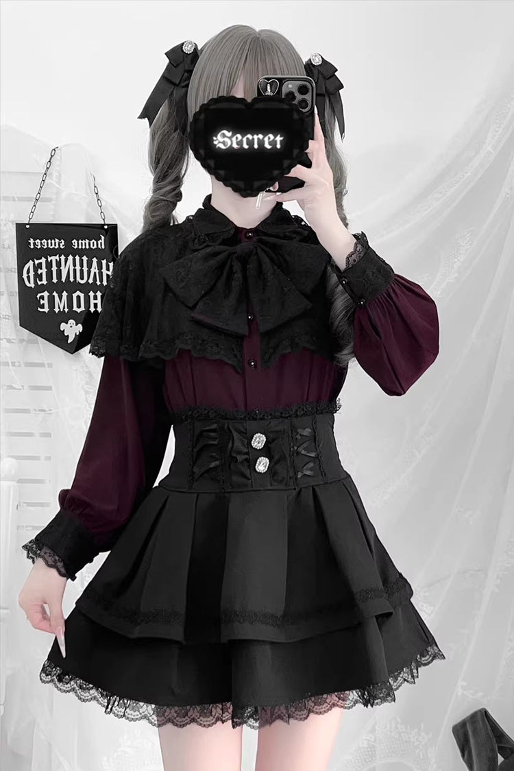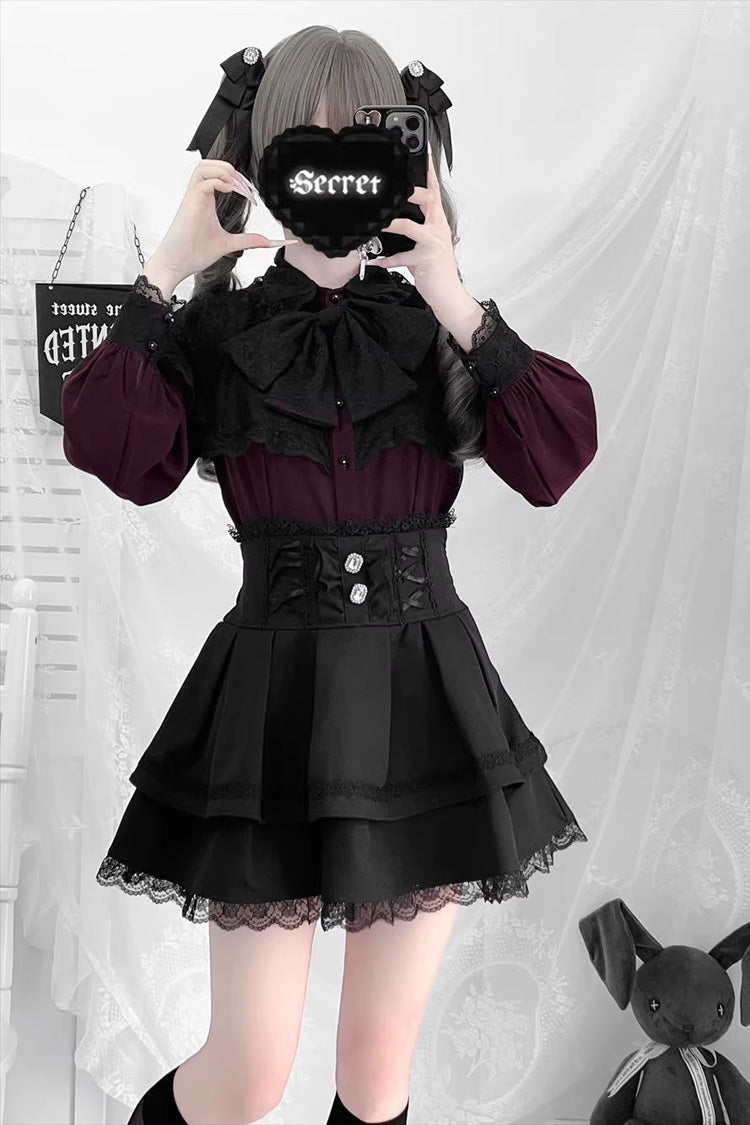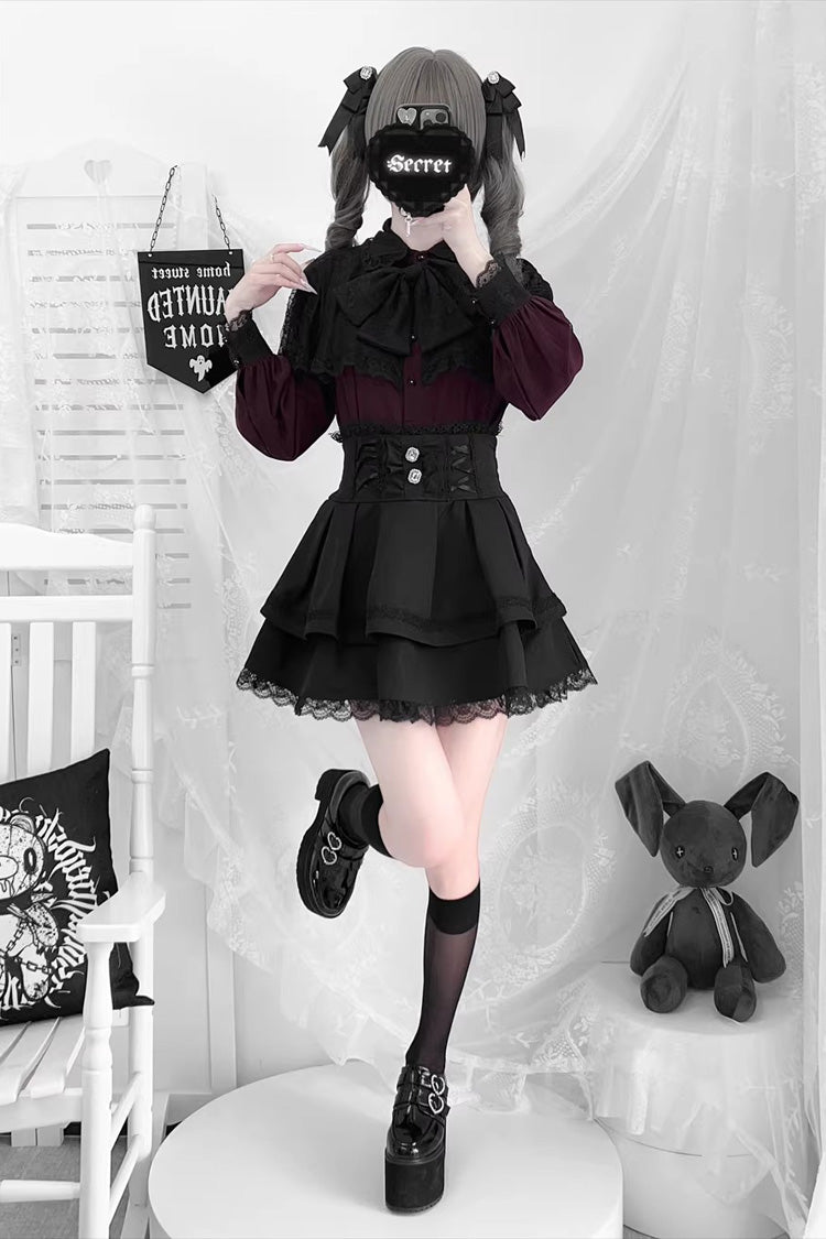 Farbe: Nur lila Oberteil, nur weißes Oberteil, nur weinrotes Oberteil, nur schwarzes Oberteil, nur rotes Oberteil, nur schwarzer Rock, nur bedruckter Rock.