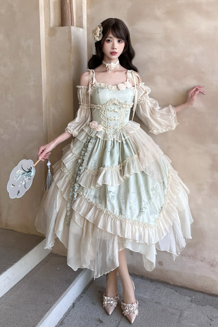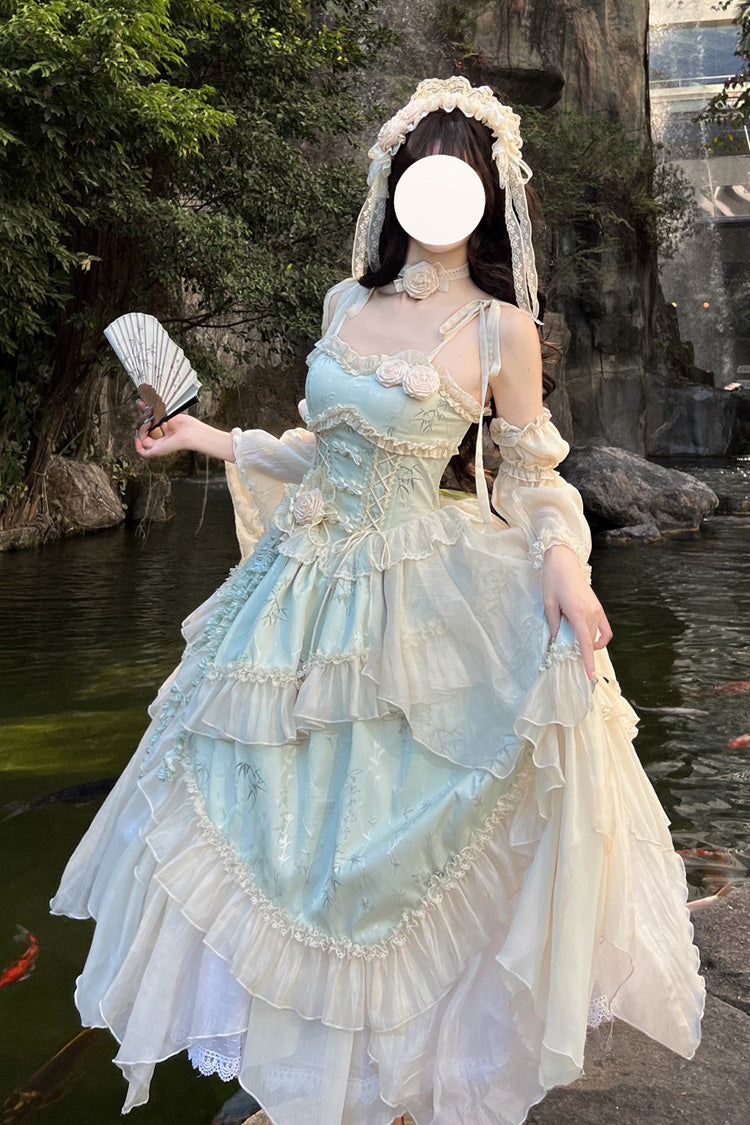 Include: Dress + Detachable Rose at Waist + Detachable Rose at Chest + Detachable Sleeves + Flower Accessory (Hanamaru Style)