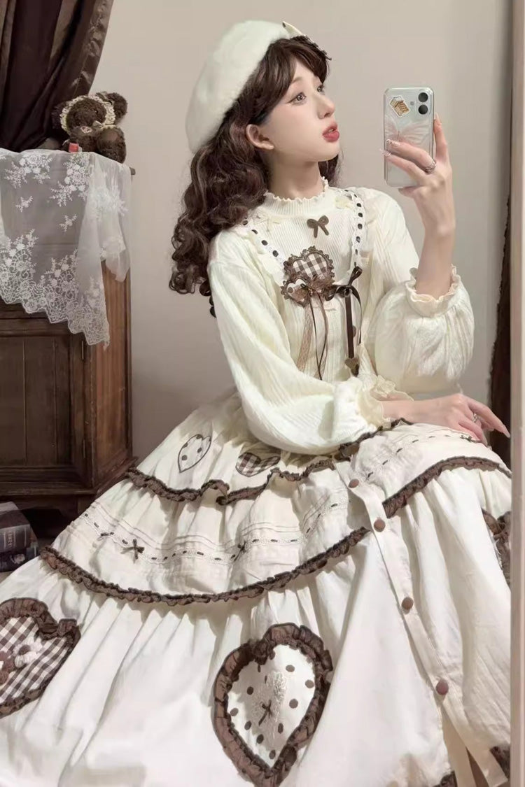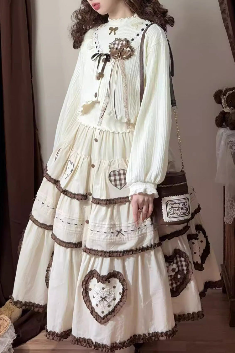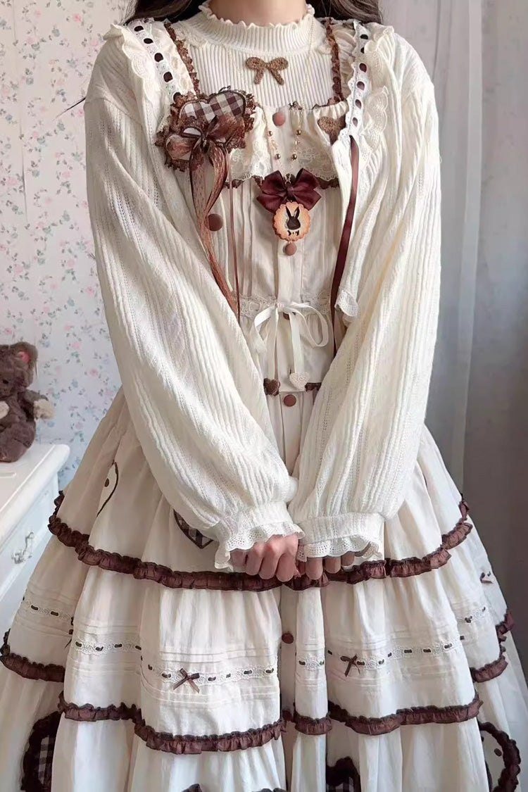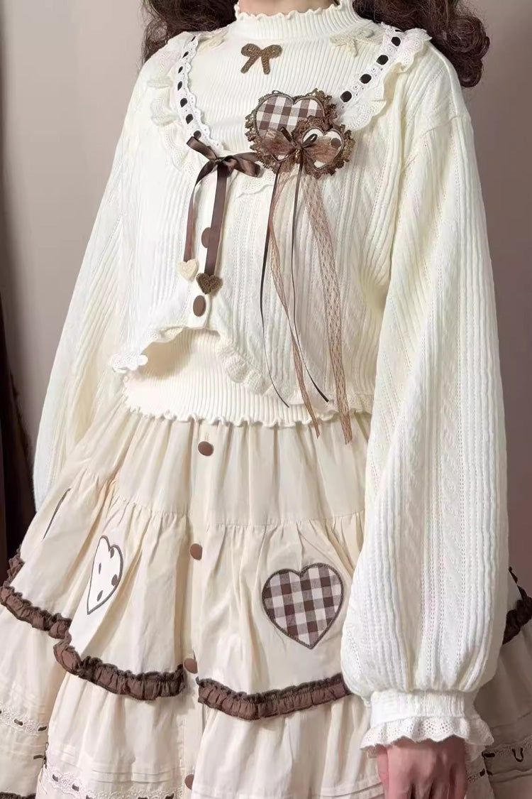 Recommended Match 1: Skirt + Long-Sleeve Cardigan + Base Knit Sweater + Rabbit Brooch + Hair Clip