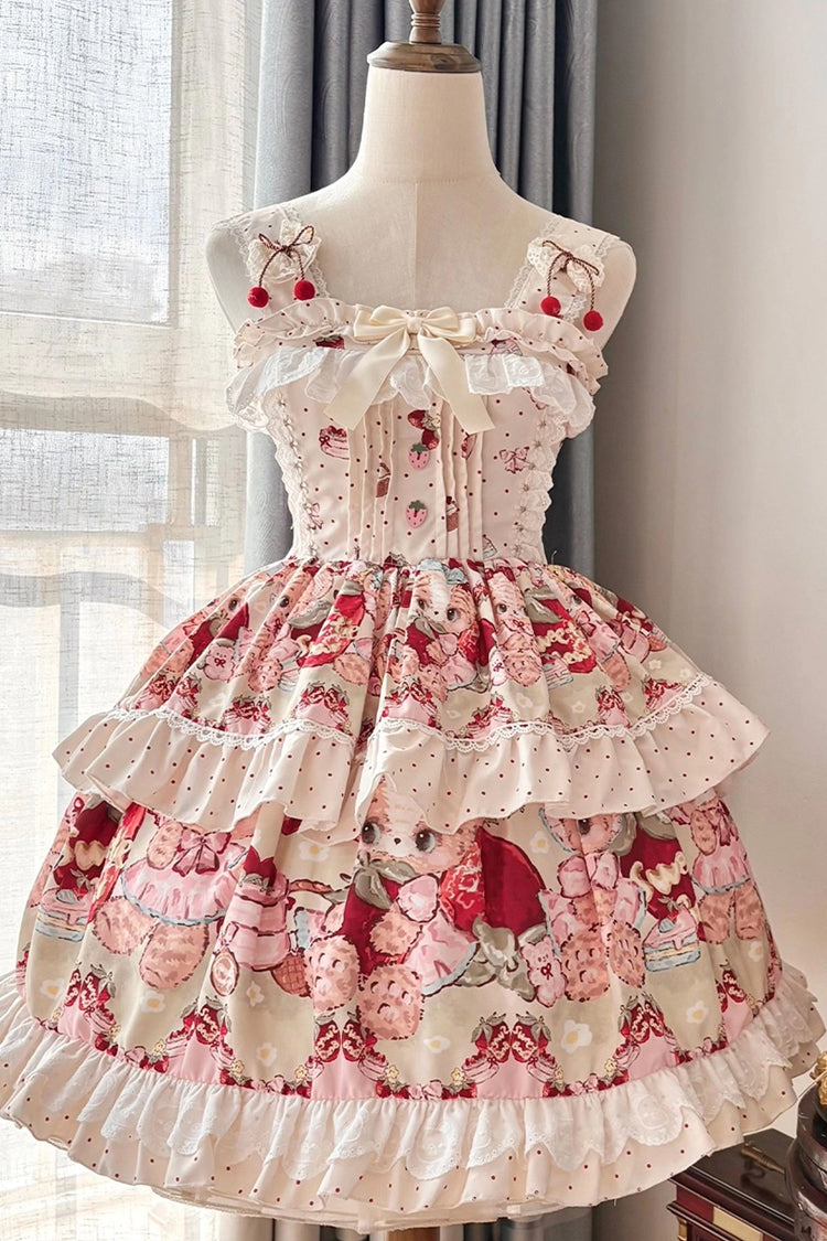 Feature: Double-Layered, Print, Ruffle, Bowknot
