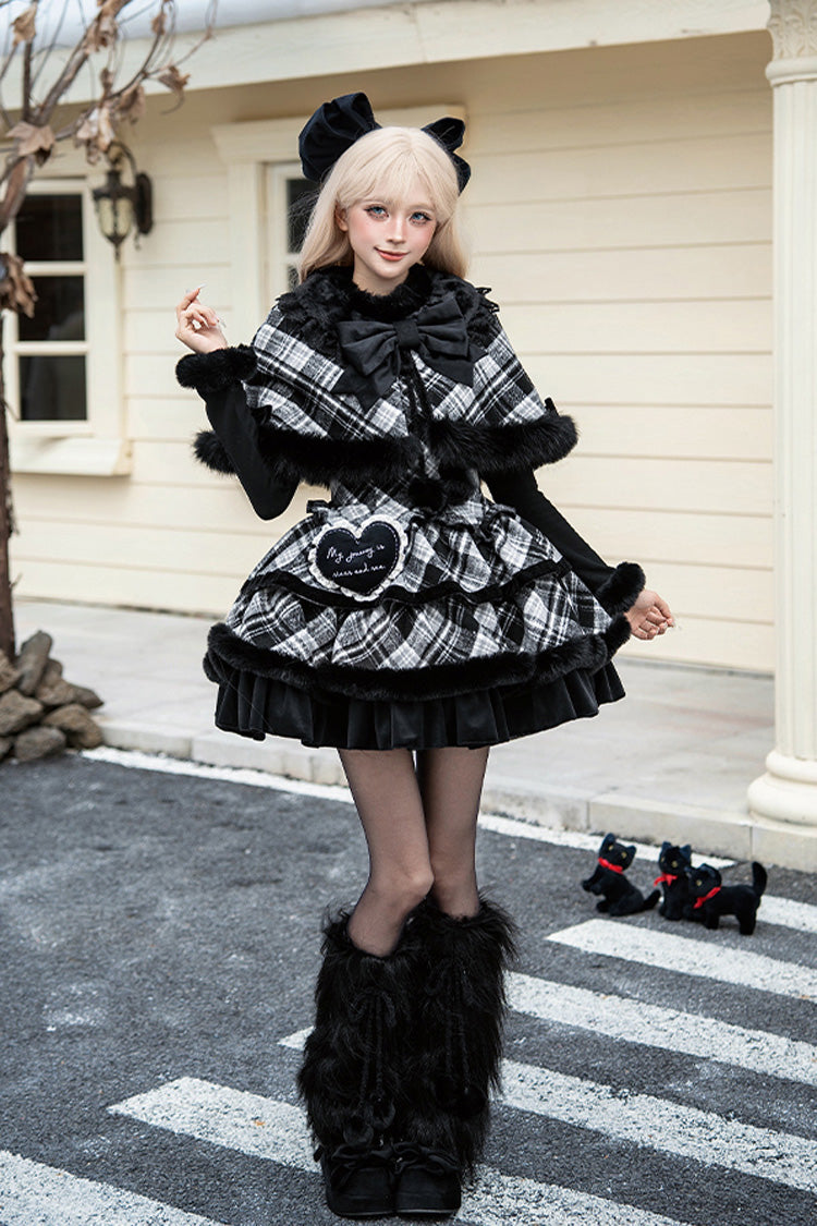 Include: Dress + Bow Brooch + Shawl + Pin + Heart Brooch + Leg Warmers