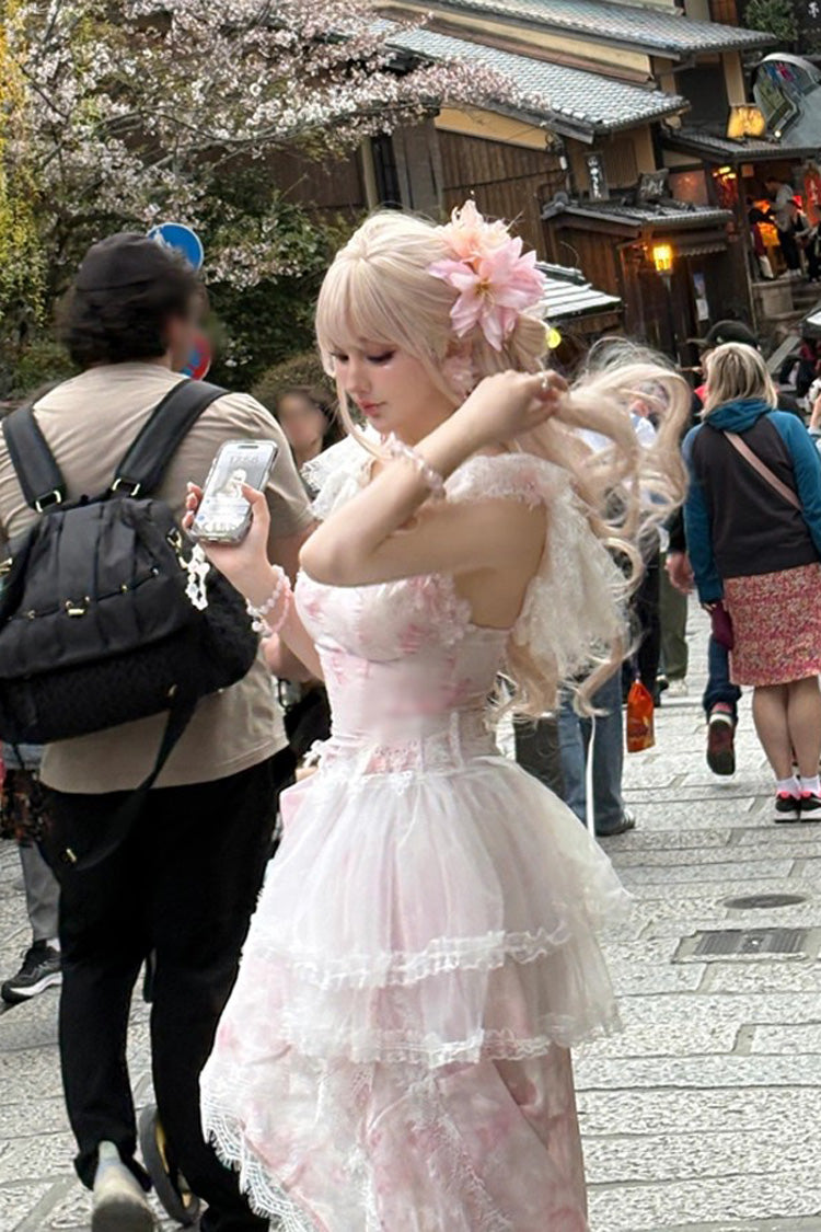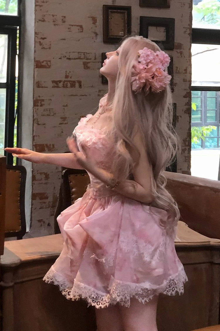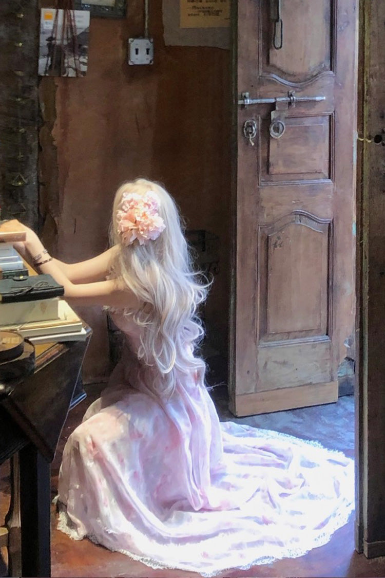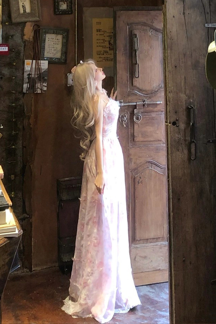 Hinweis: Der Saum des Kleides zeigt unterschiedliche Effekte, wenn er gefaltet wird.