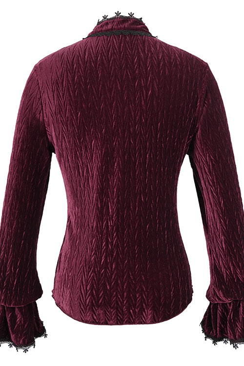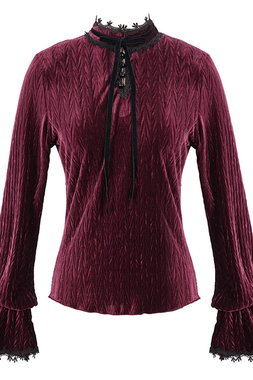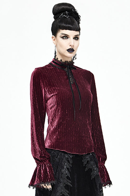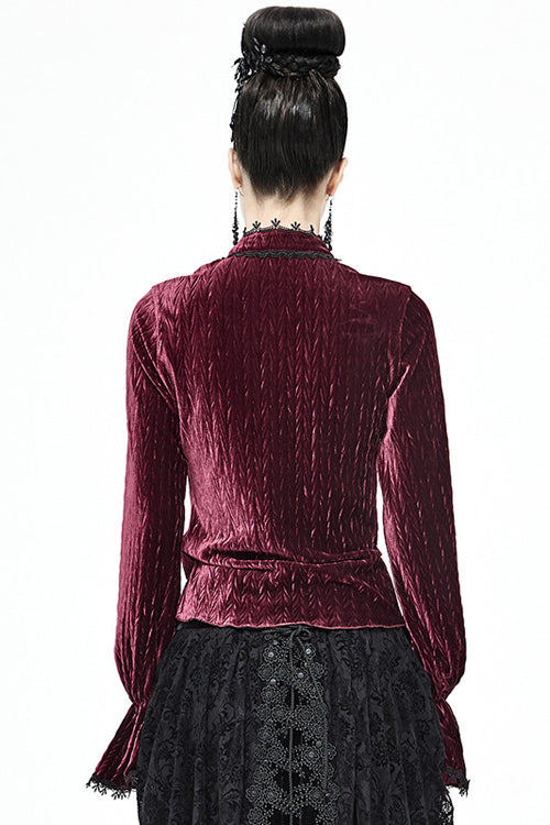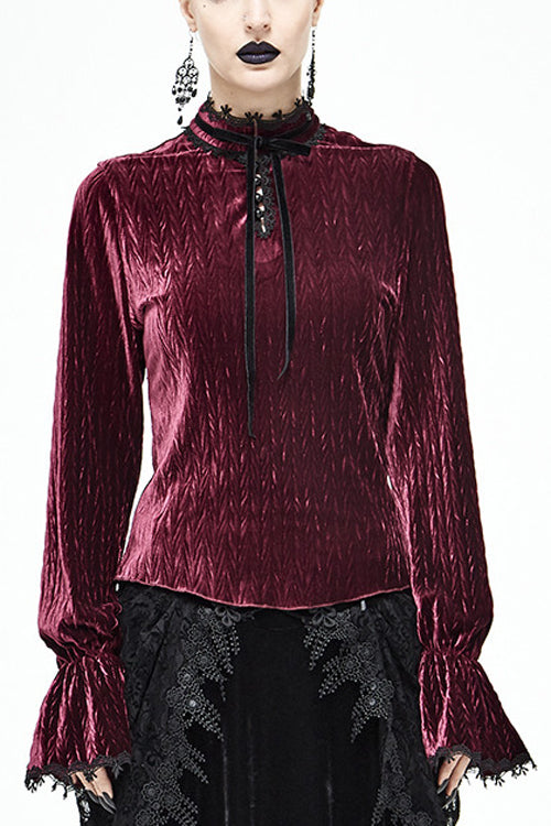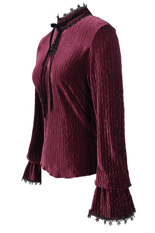 The whole piece is made of elastic pleated velvet material, small lantern sleeve, neckline and cuff with lace decoration.Velvet fabric is suitable for cool weather in spring and autumn.