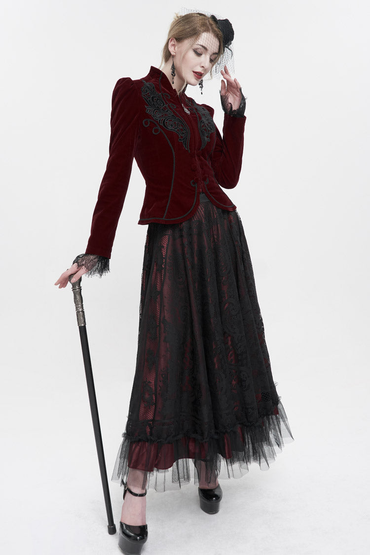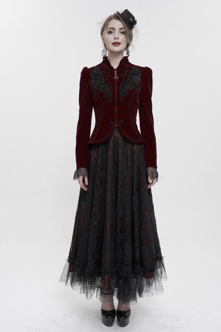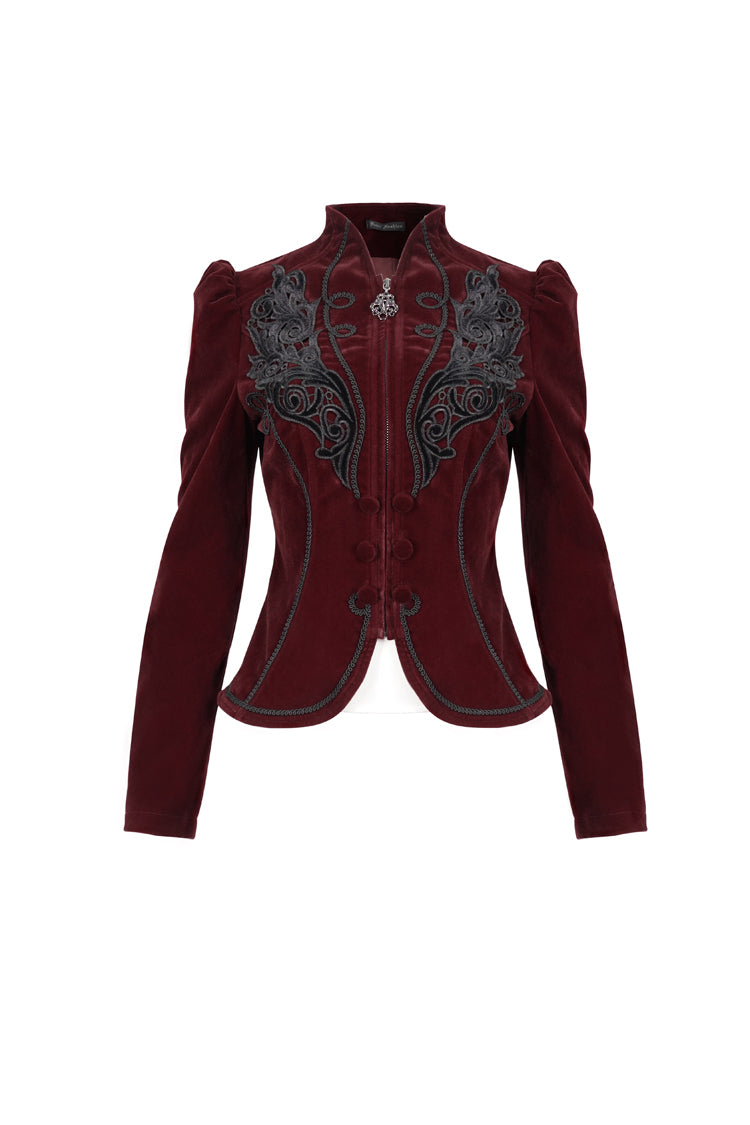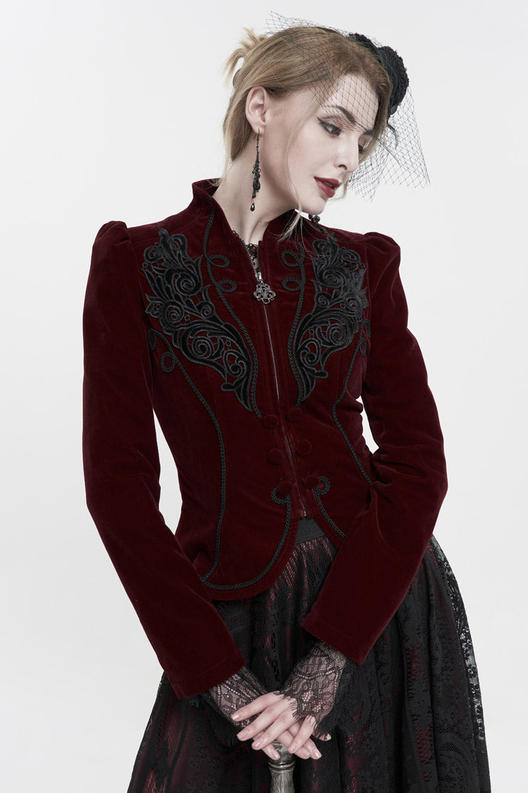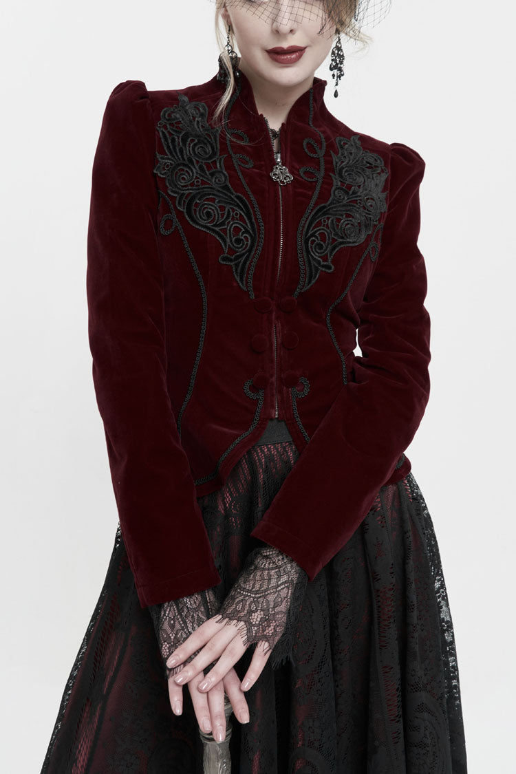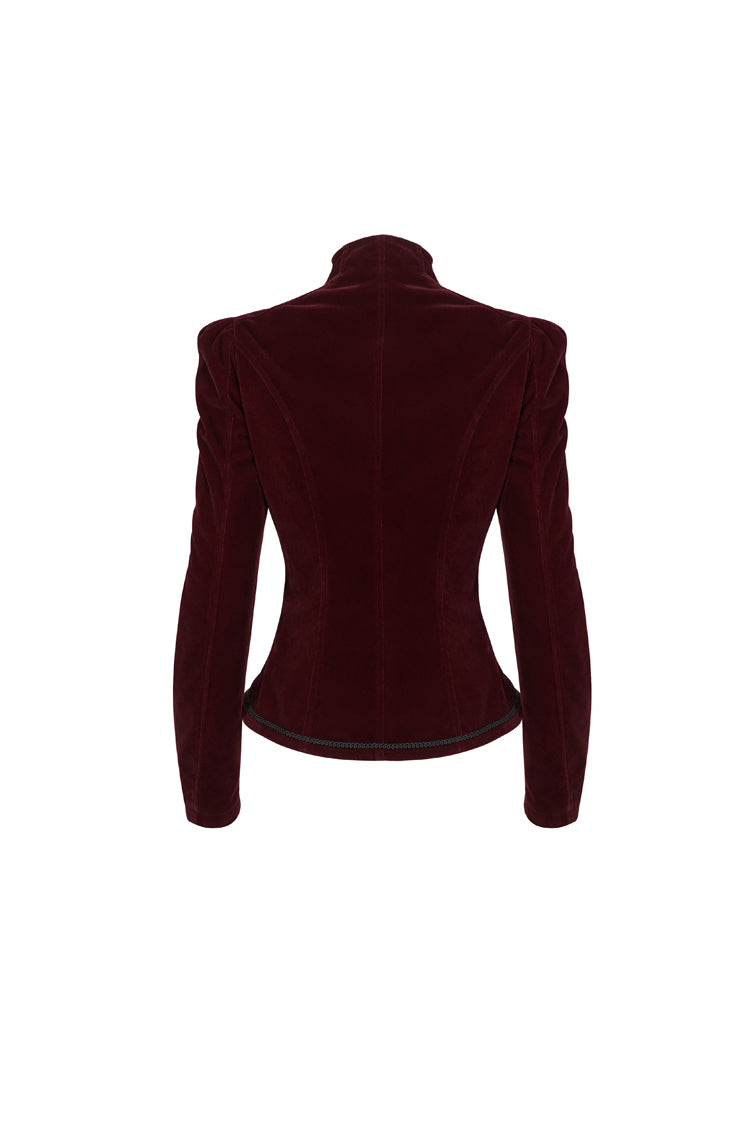 Der Hauptstoff besteht aus einem sich weich anfühlenden Samtstoff. Kurzer Jackenstil, lange Ärmel und Stehkragendesign, der mit einem zarten Anhänger verzierte Metallreißverschluss vorne in der Mitte und eine Samtapplikation auf der Brust verleihen einen Hauch von Raffinesse. Geeignet für Herbst, Winter und Frühling, ohne Einschränkungen bei den Trageanlässen.