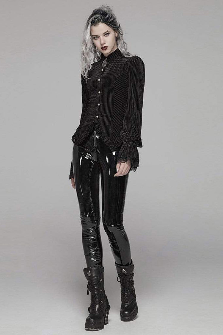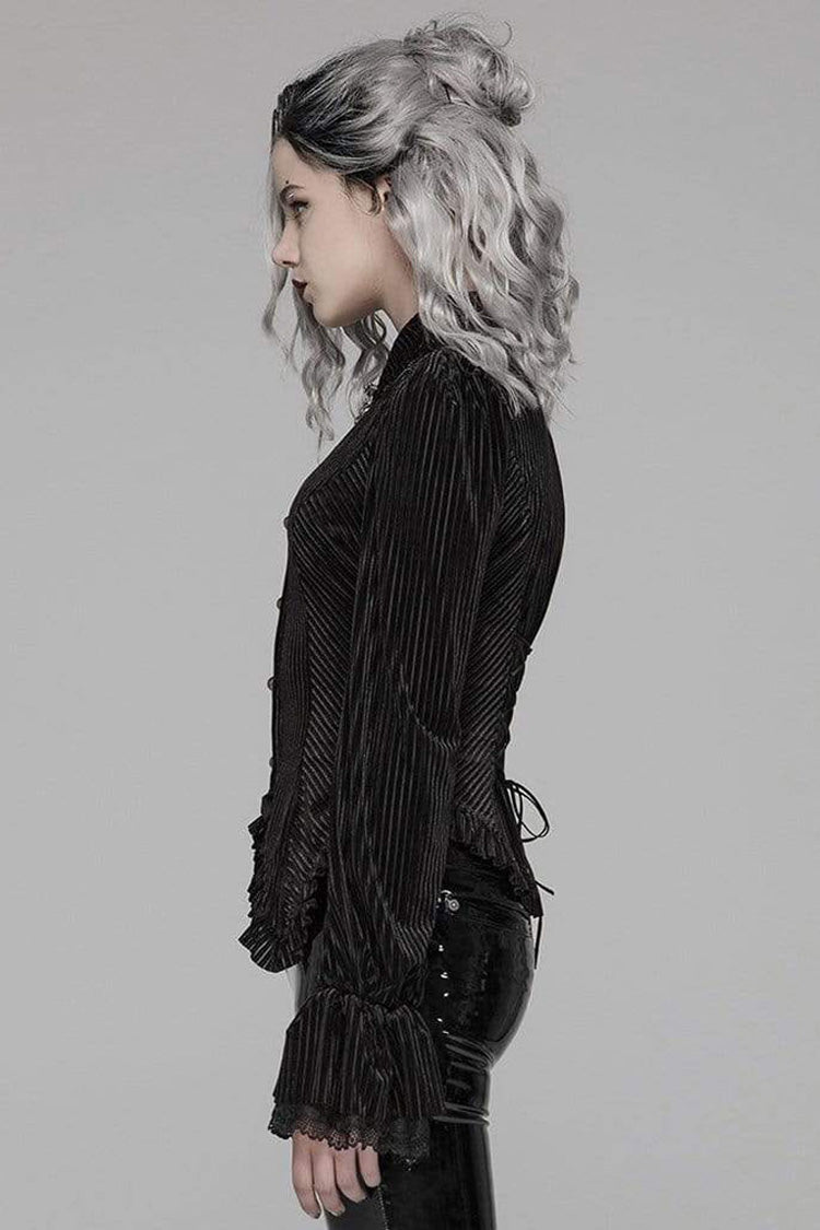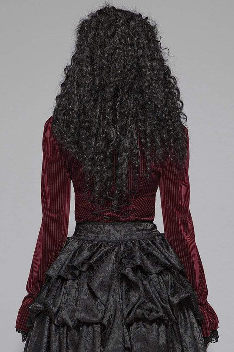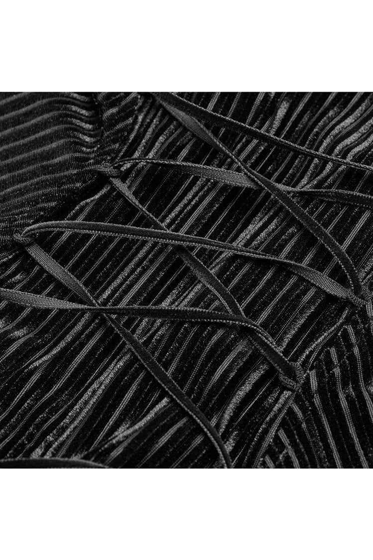 1.The whole piece is made of elastic dark striped velvet fabric.