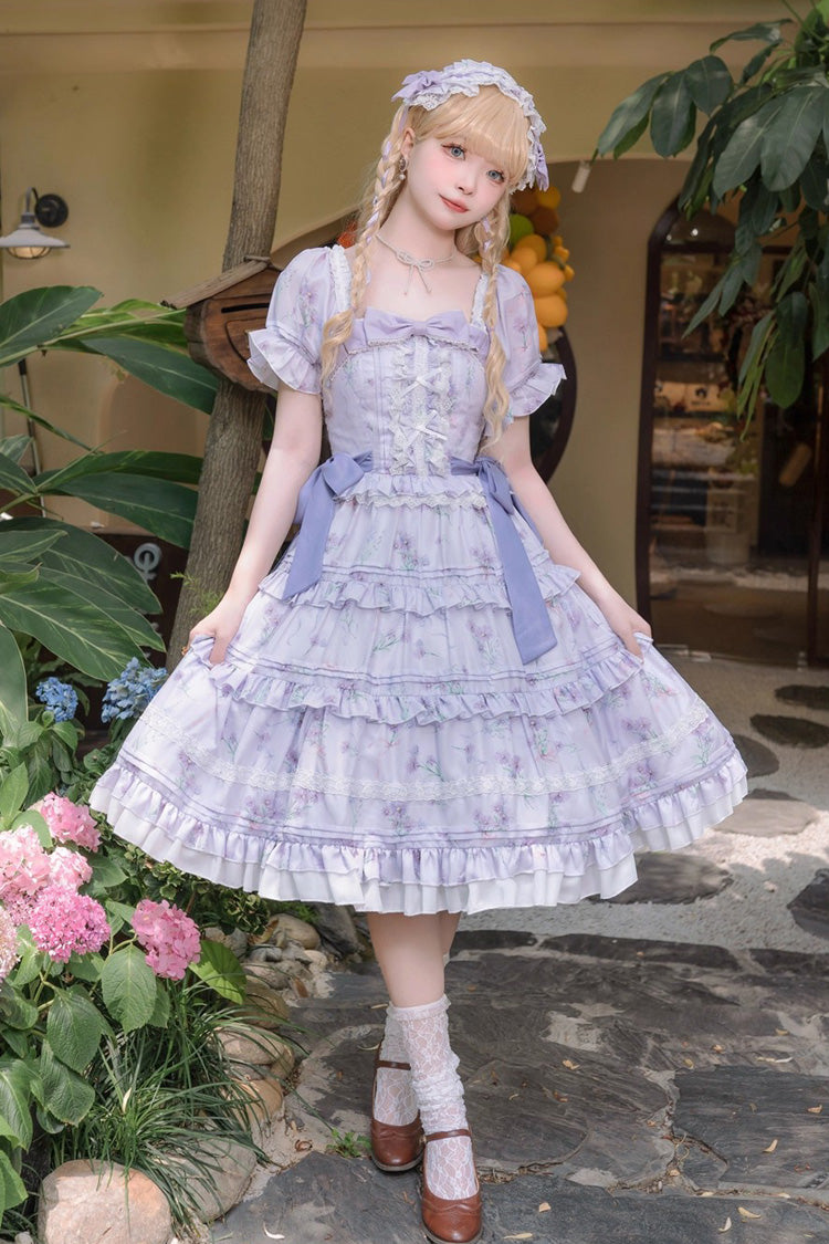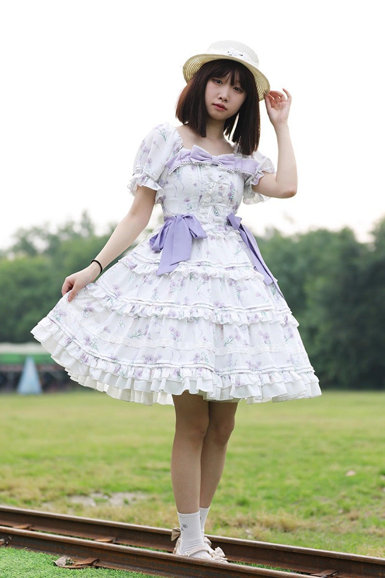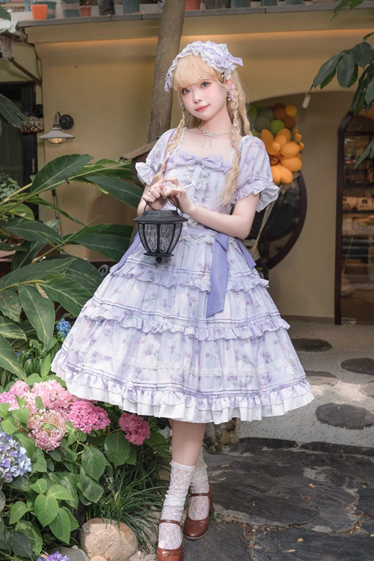 Feature: Triple-Layered, Print, Ruffle, Bowknot, Lace-Up