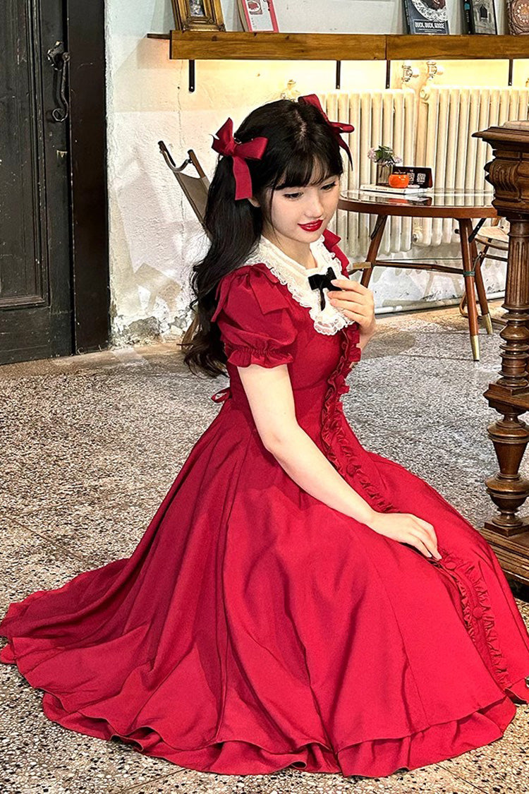 Lieferumfang: 1 Kleid + 1 Schleife am Ausschnitt + 2 kleine Schleifen + 1 Spitzenkragen