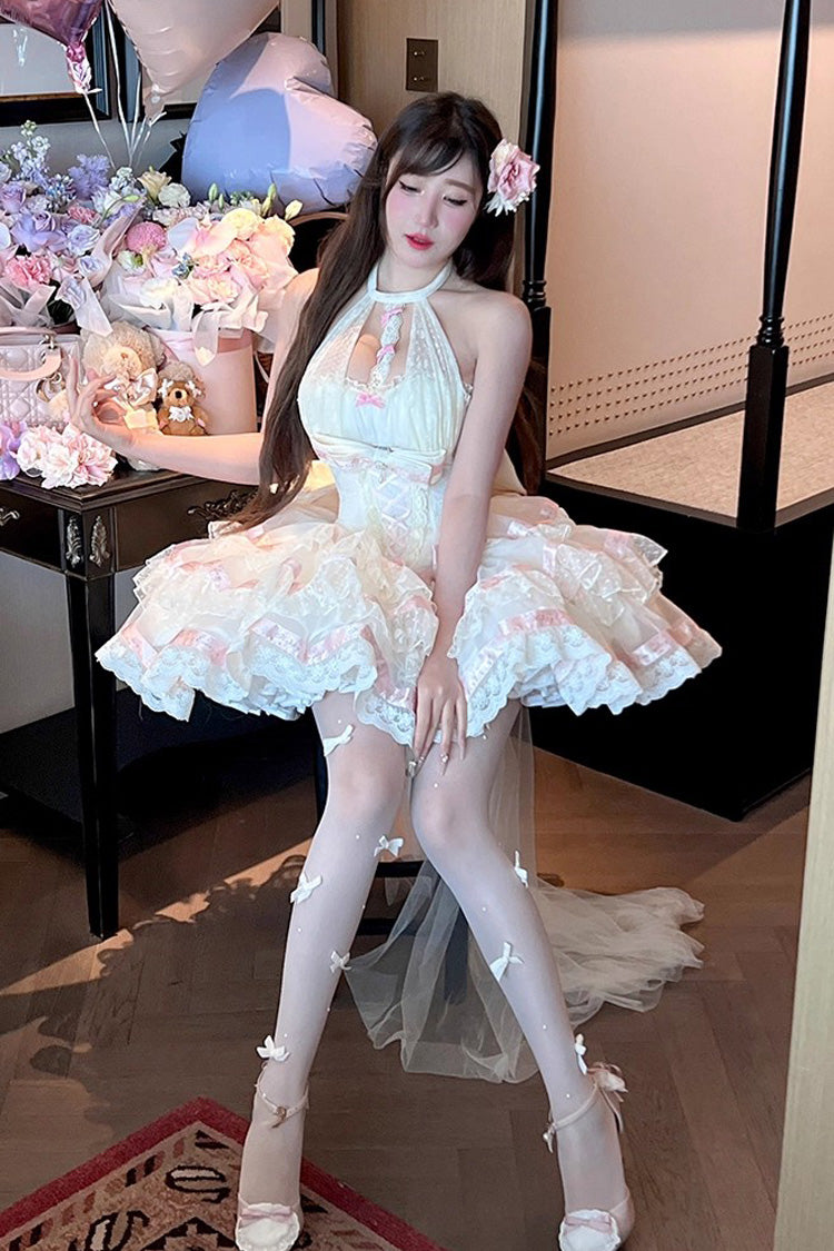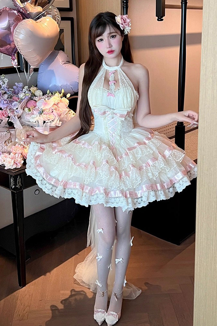 Feature: Triple-Layered, Ruffle, Bowknot, Lace-Up