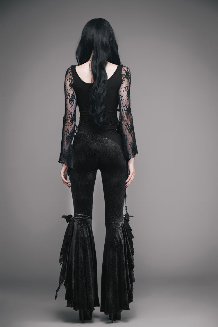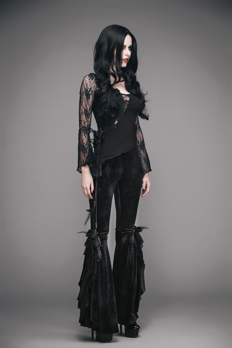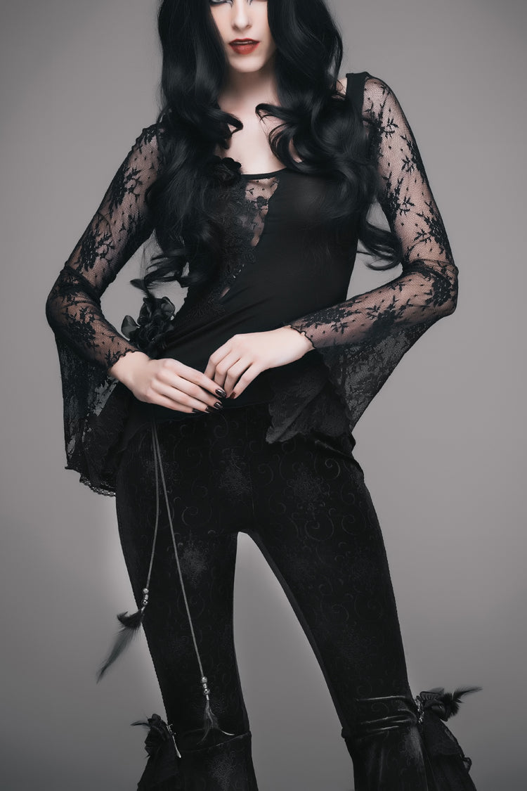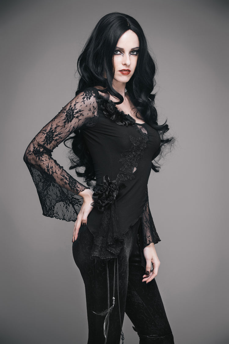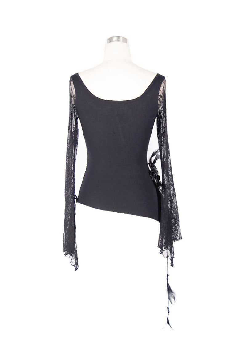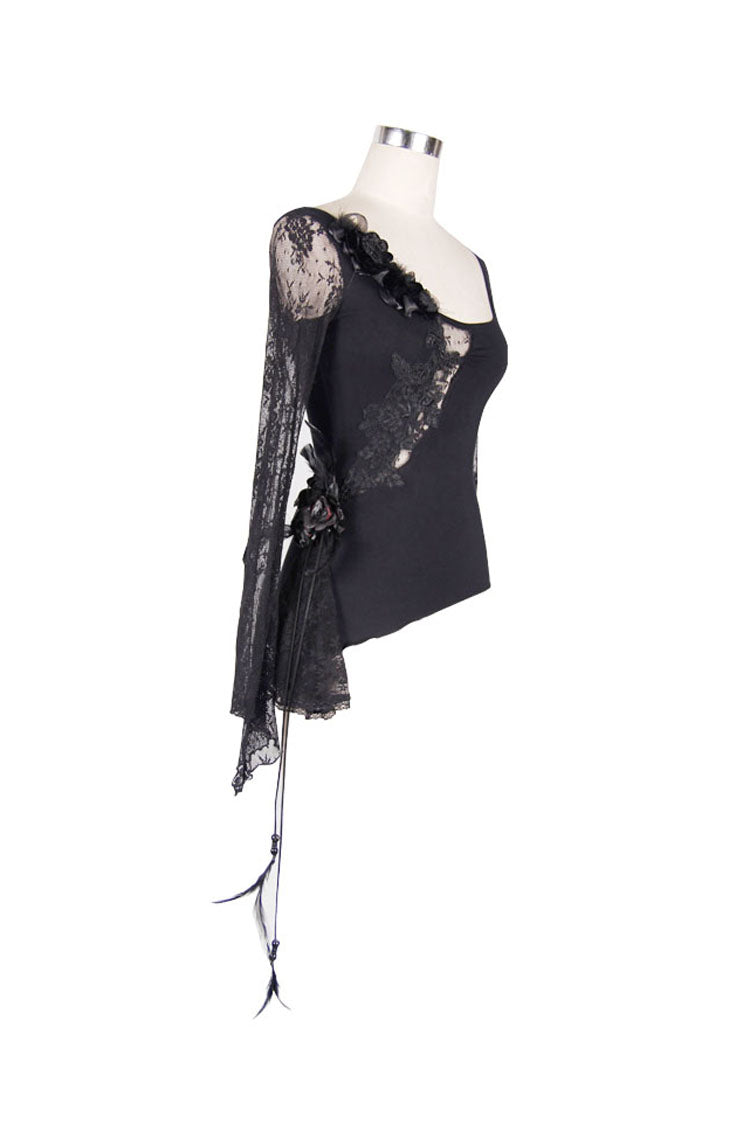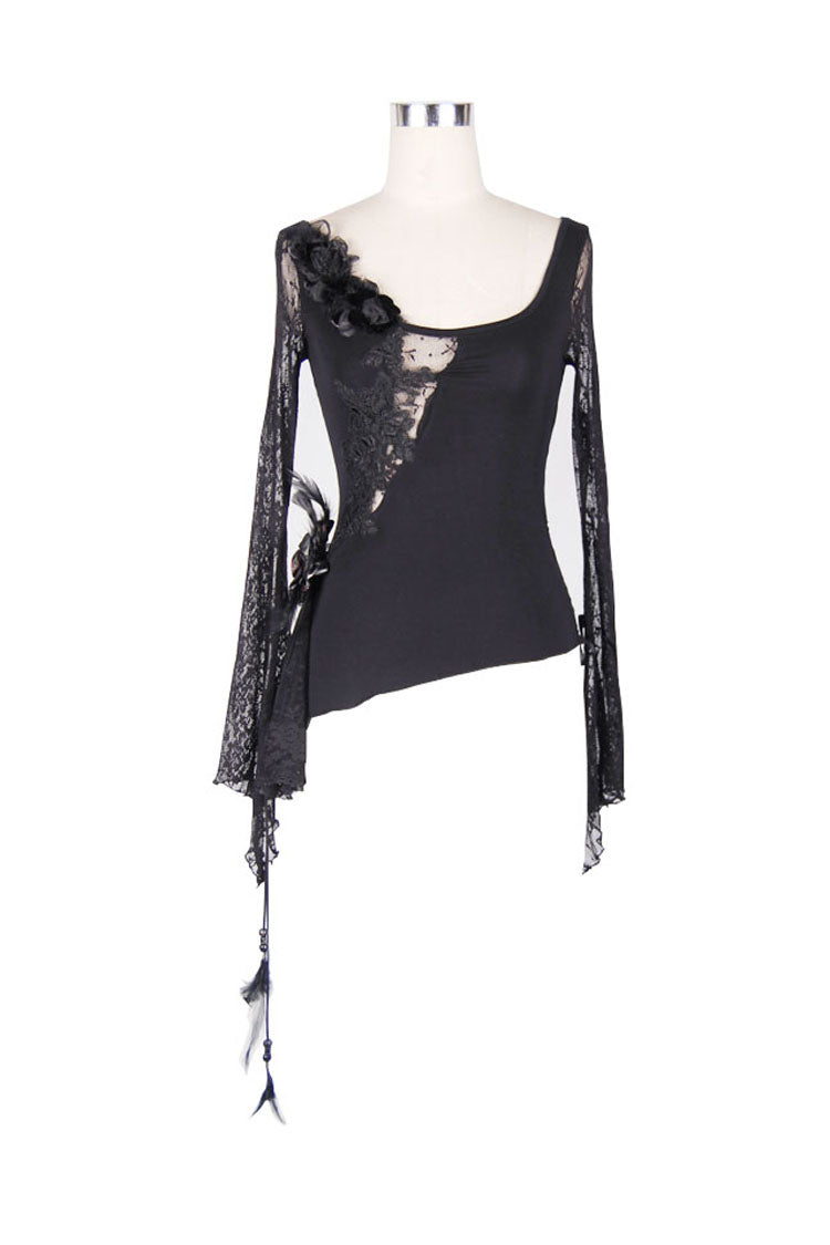 Stretchy cotton knitted fabric splicing lace fabric, chest transparent lace asymmetrical splicing, chest of the rose can not be removed, asymmetrical oblique hem design.