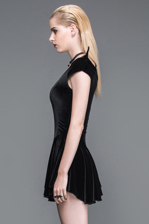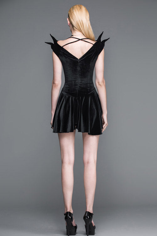 The whole piece is made of dense velvet fabric with aluminum wire inside the small wings on the shoulders which can be shaped at will .There is a invisible zipper in the center back.