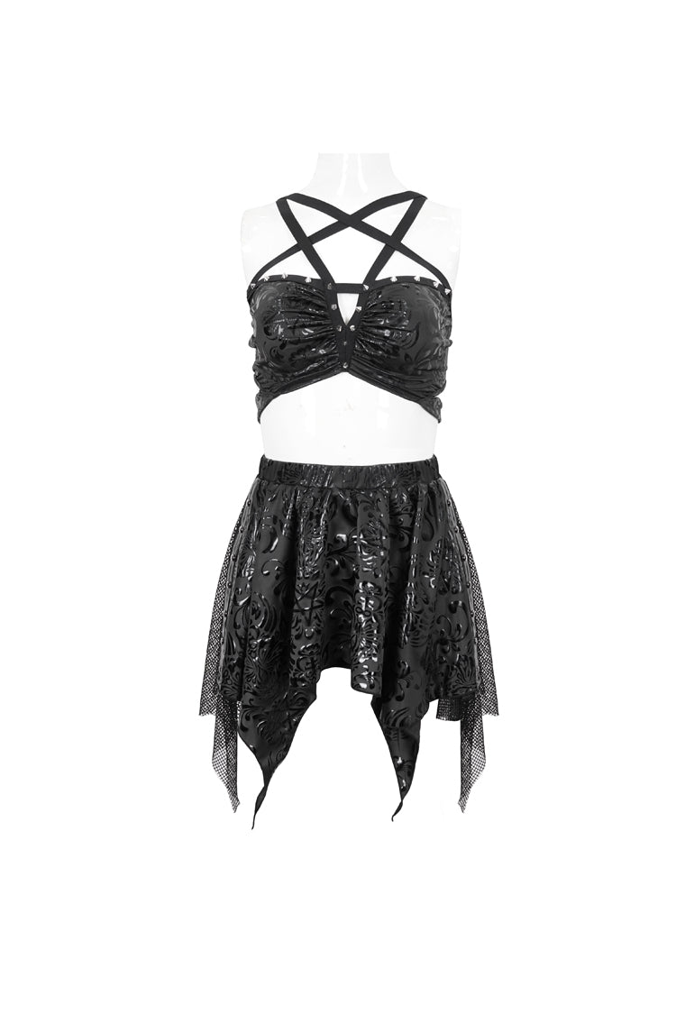 1. Pentagram gothic print swimwear material designed as a one-piece swimsuit.