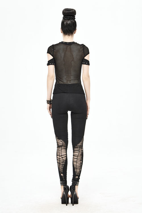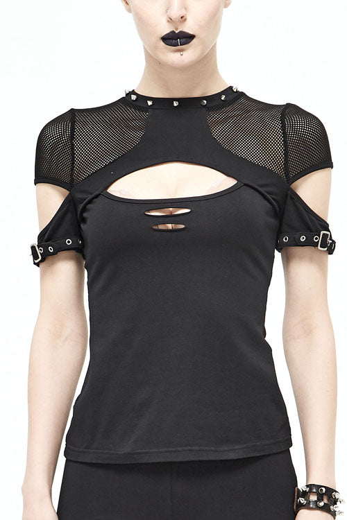 Good elastic cotton knitted fabric stitching with hexagonal diamond mesh material, front chest burn out broken holes, hand stitched nail on the collar, cuff with loop and corns, suitable for daily wear in summer.