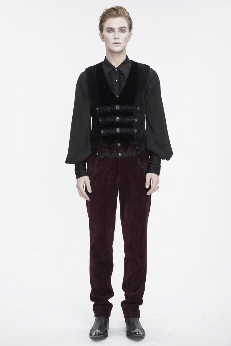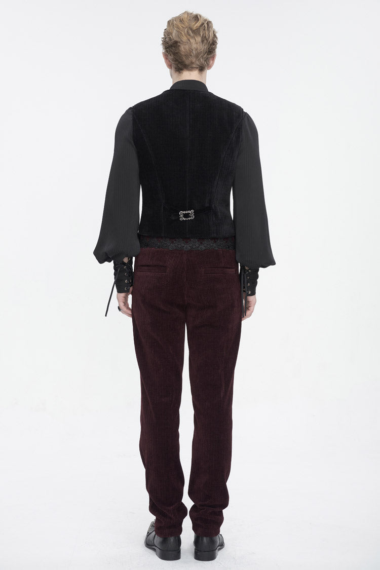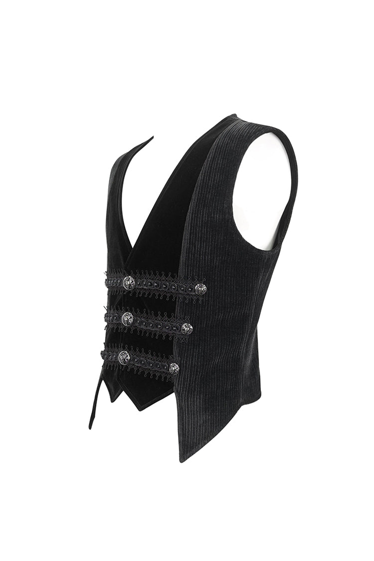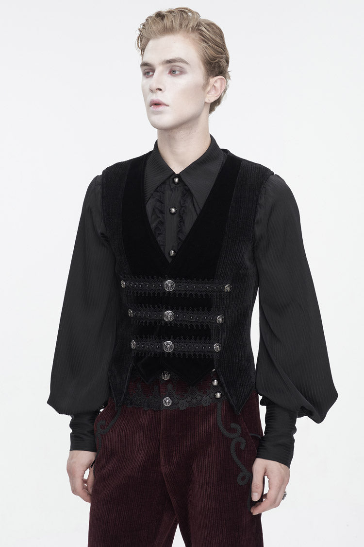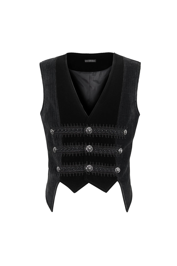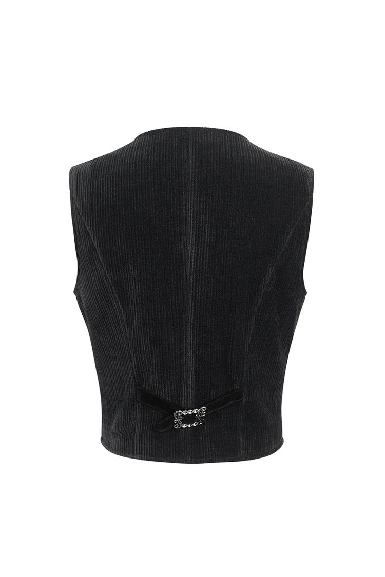 This gothic waistcoat is velvet splice corduroy fabric. Irregular hem. Lace and beads on the front. Exquisite buttons for closure and decoration. A buckle on the back. No elastic fabric. Available in two colors.