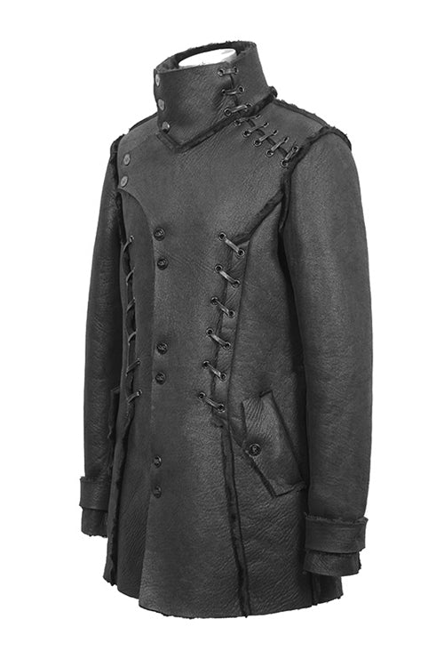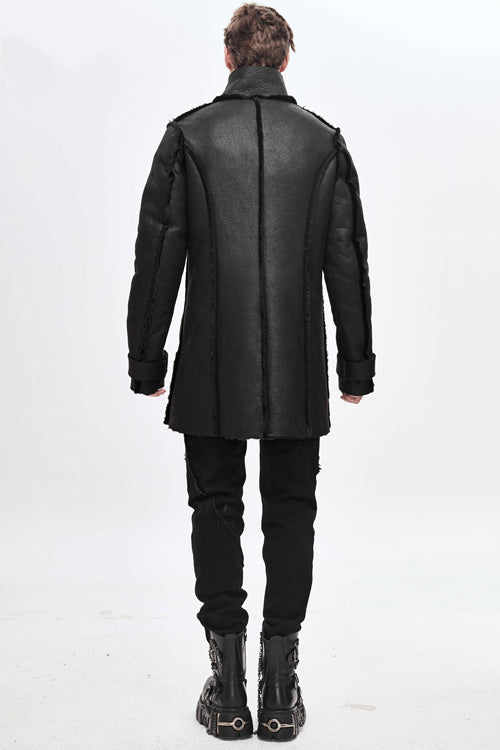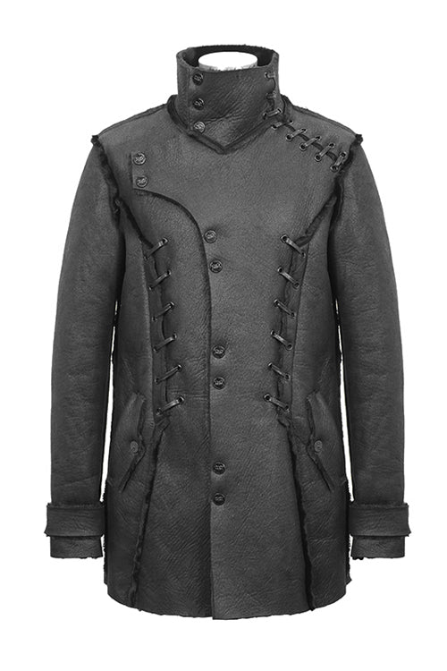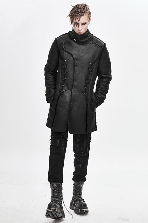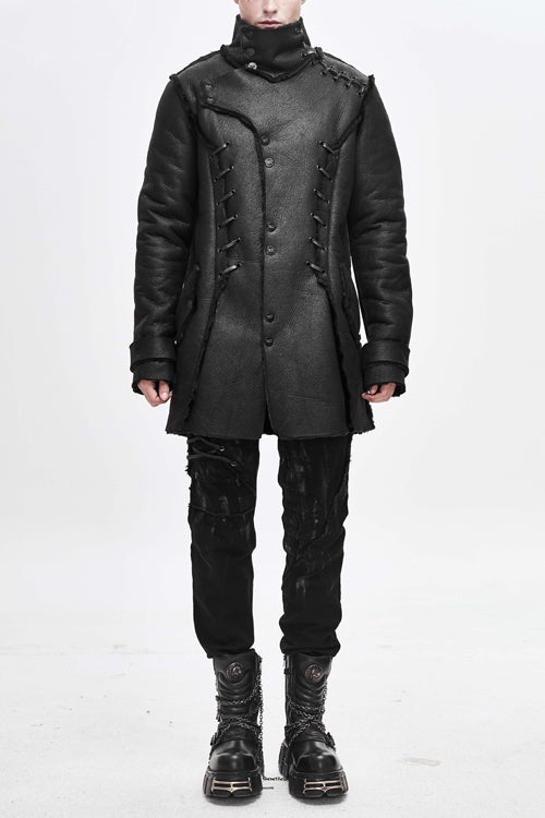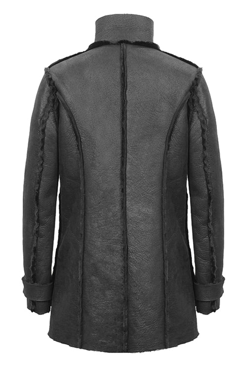 The main fabric is made of short fur fabric and the whole piece is made of a single layer. High collar, asymmetrical lapel, metal snap fastener closure.All the seams are hairy, decorated with tying rope corns on both sides of the center front.