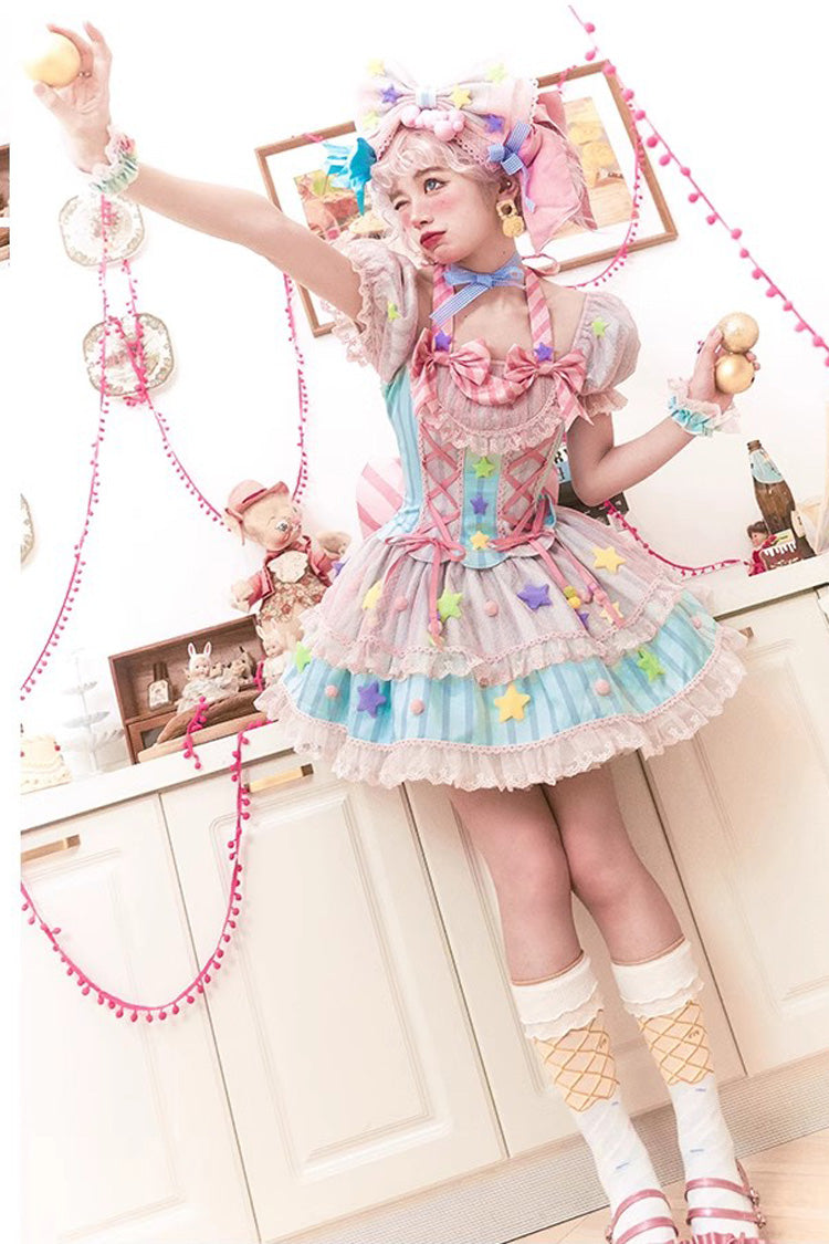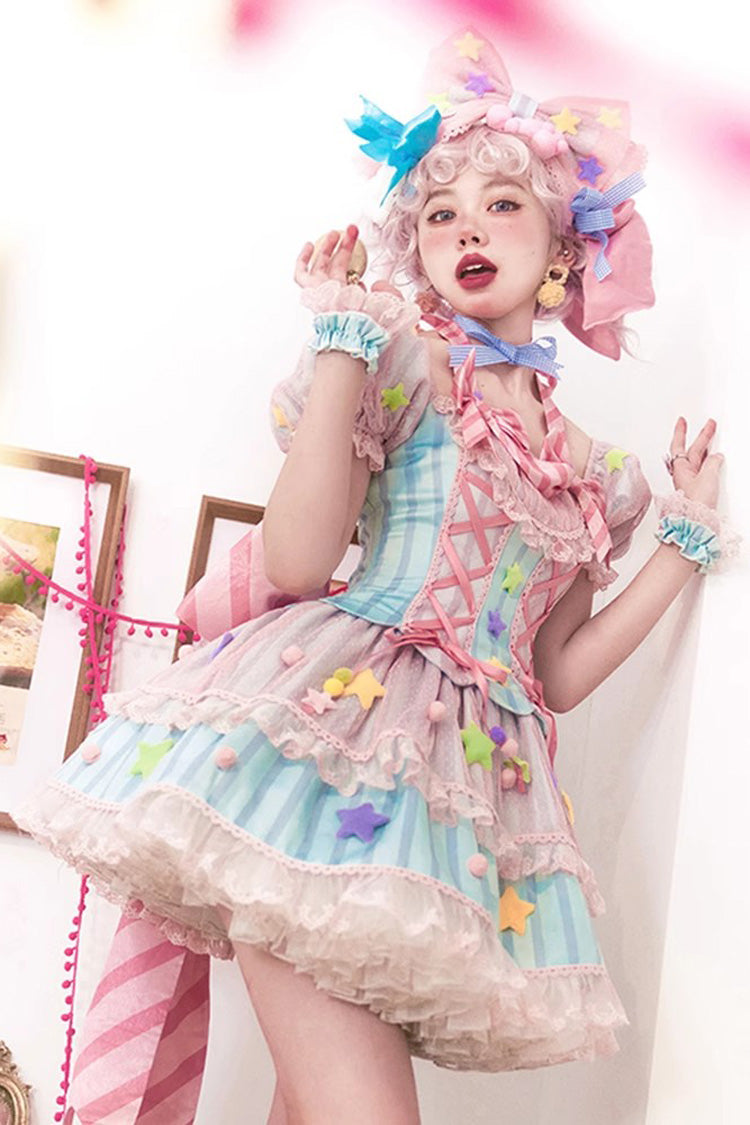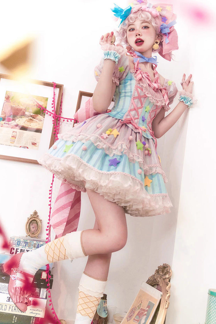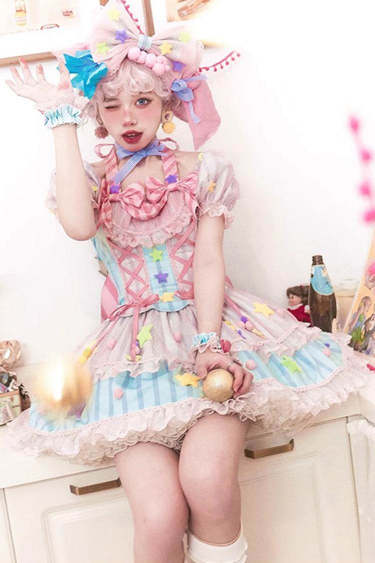 Feature: Print, Ruffle, Bowknot, Lace, Lace-Up