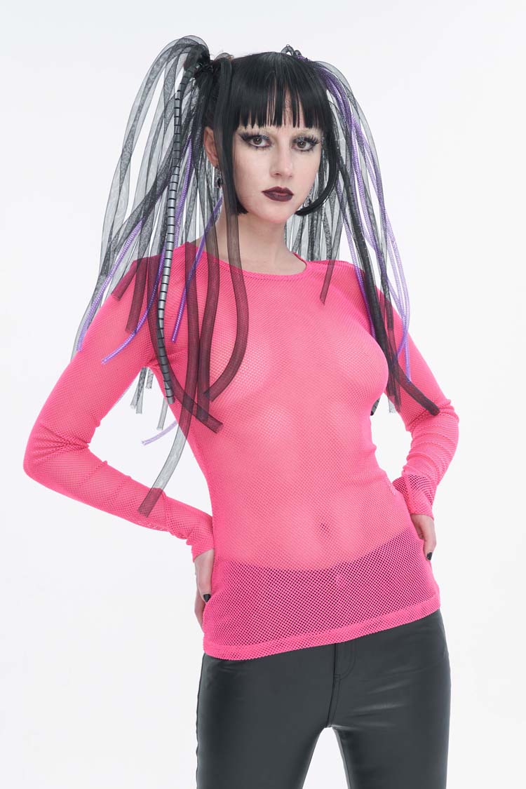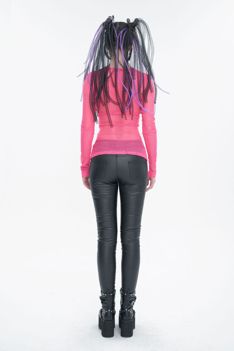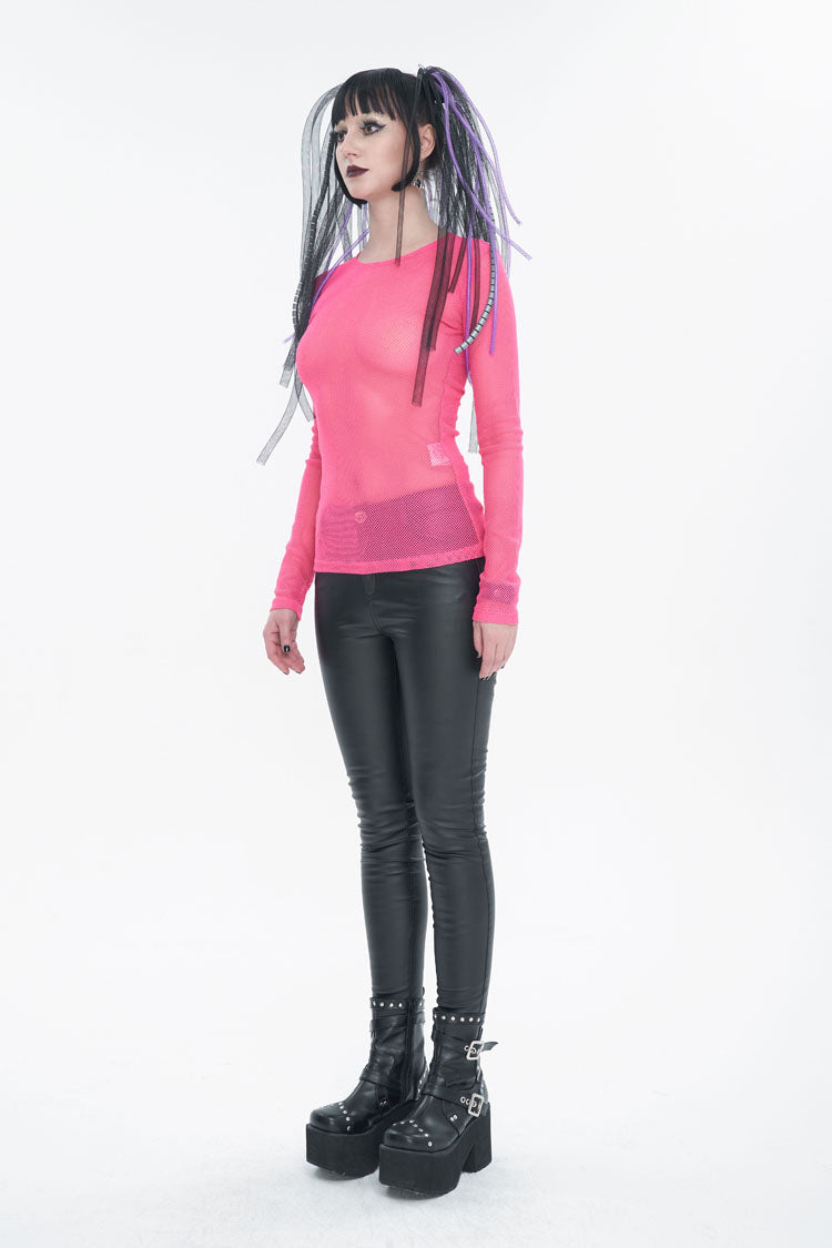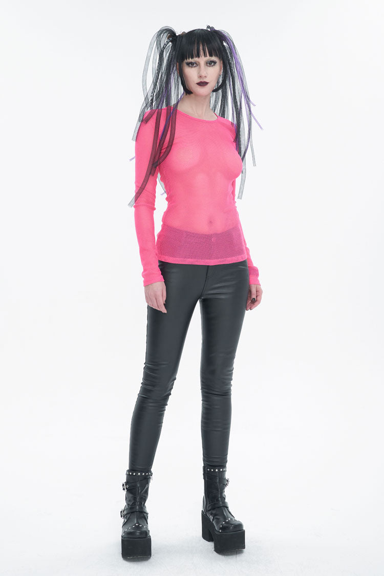 The main fabric is made of elastic diamond-shaped fine mesh, high-necked and long-sleeved. It can be worn alone and can be used as an inside.