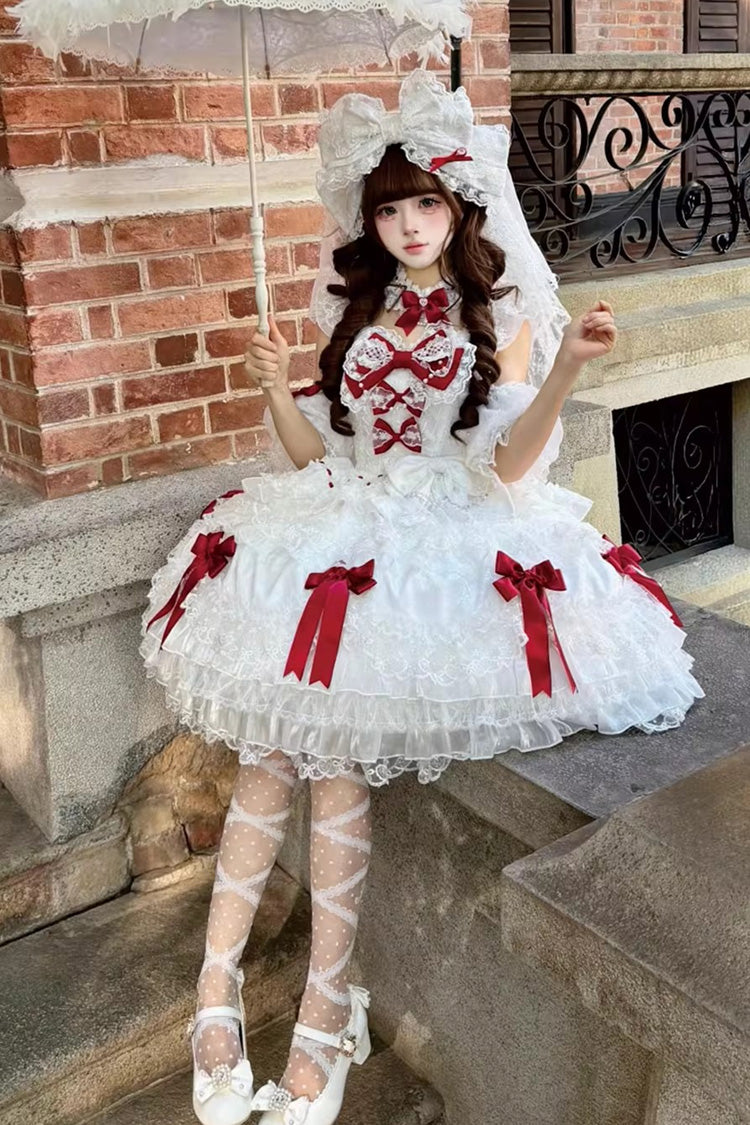 Feature: Multi-Layered, Ruffled, Bow, Lace, Pearl-Decorated