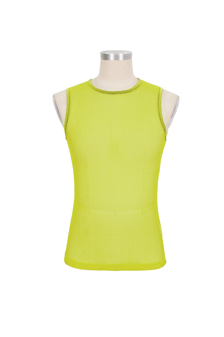 The main fabric is made of hexagonal diamond mesh with good elasticity, and the cuffs and neckline are made of light imitation PU fabric, which is suitable for daily wear.