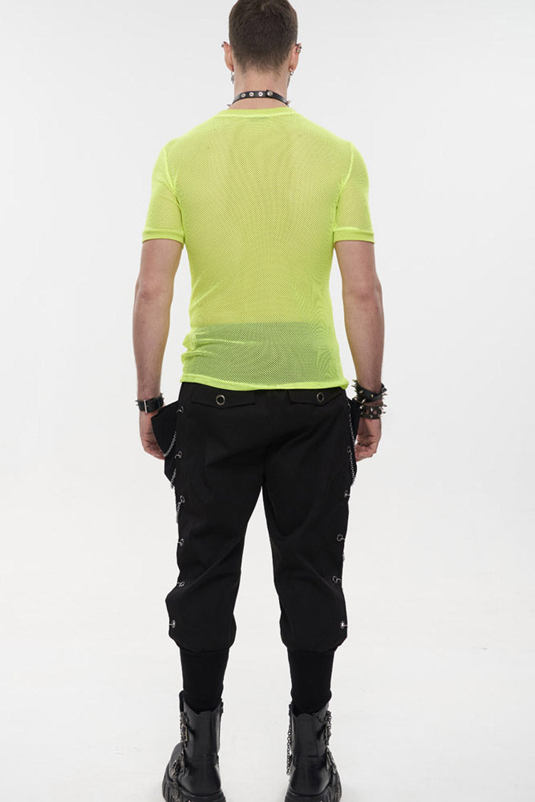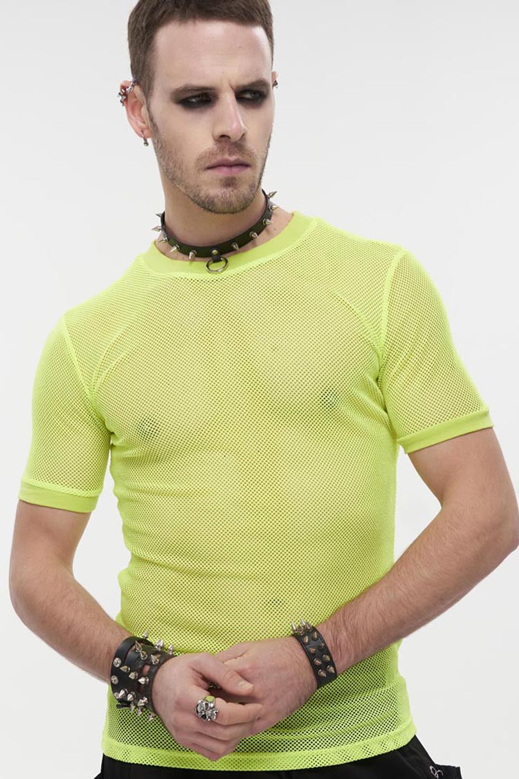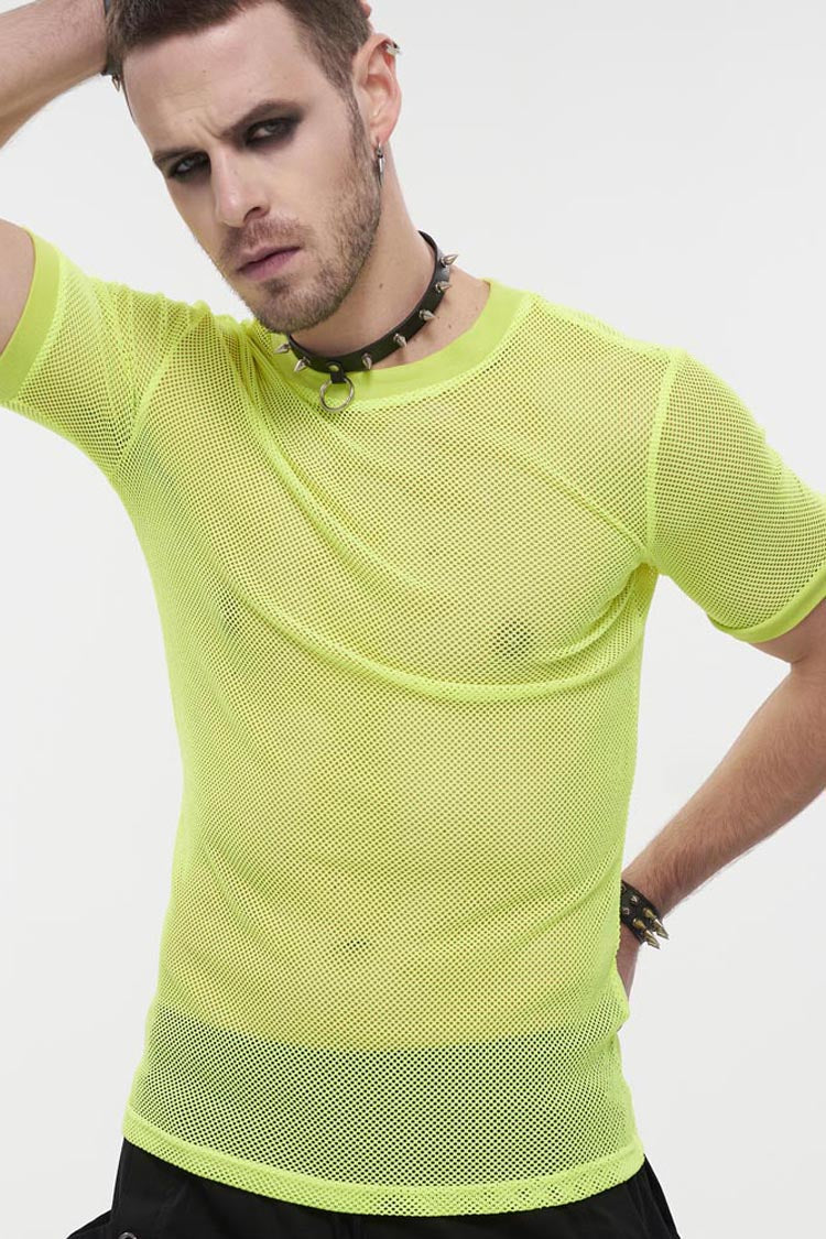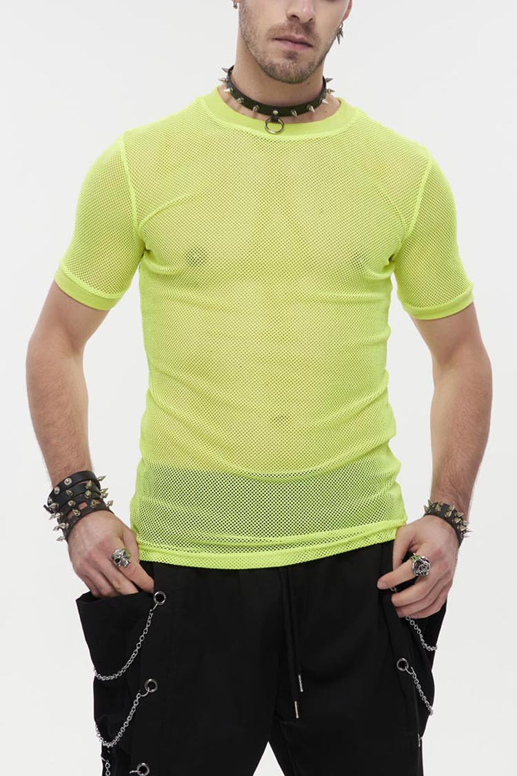 The whole piece is made of hexagonal diamond mesh material with excellent elasticity and is designed into a basic style round collar and short-sleeve T-shirt, with braids and tied with the rope of side seams, suitable for daily wear.