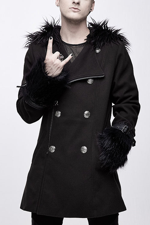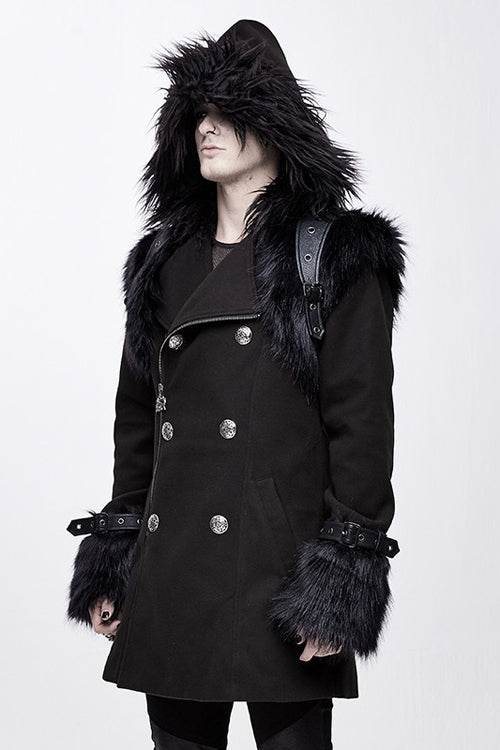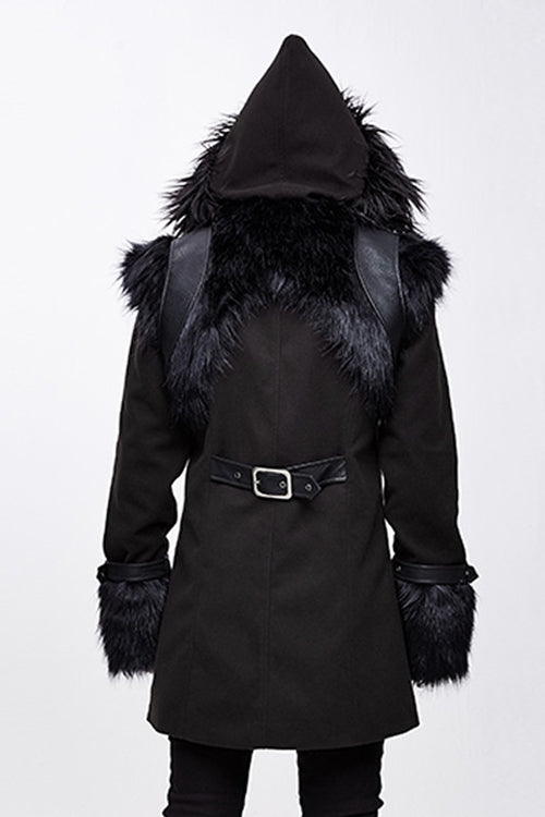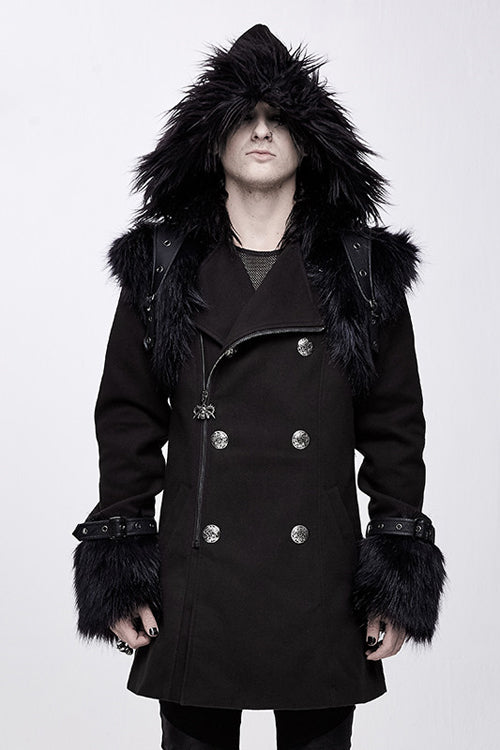 The whole piece is made of double-sided woollen cloth, shoulder cape can be removed, and the metal ornaments can be twisted.