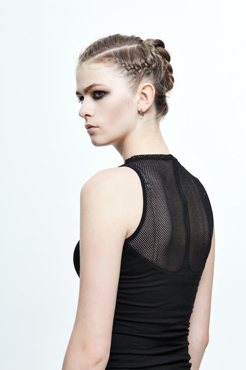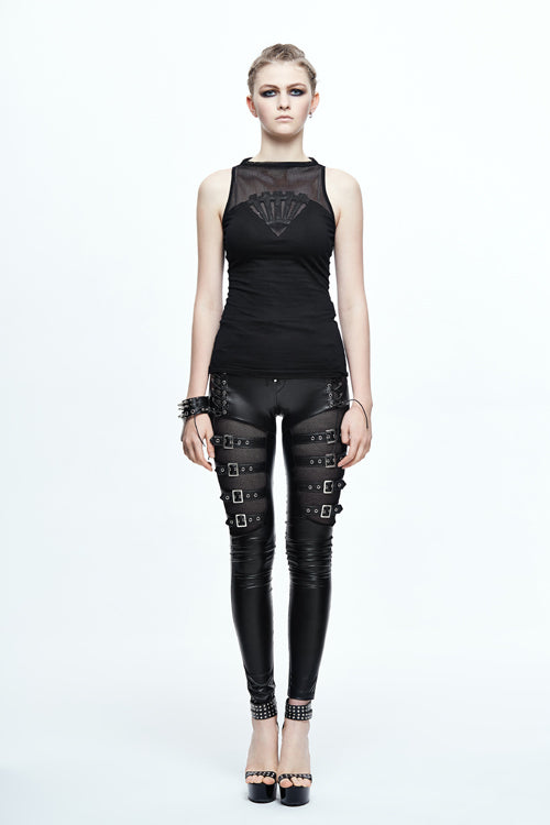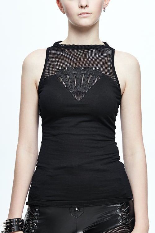 Good elastic cotton knitted fabric stitching hexagonal diamond mesh, leather embroidered gear pattern on the chest.Suitable for everyday wear.