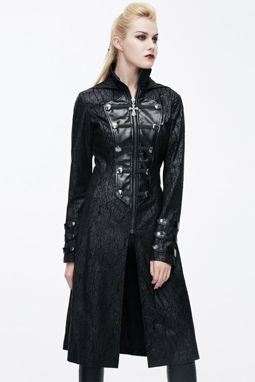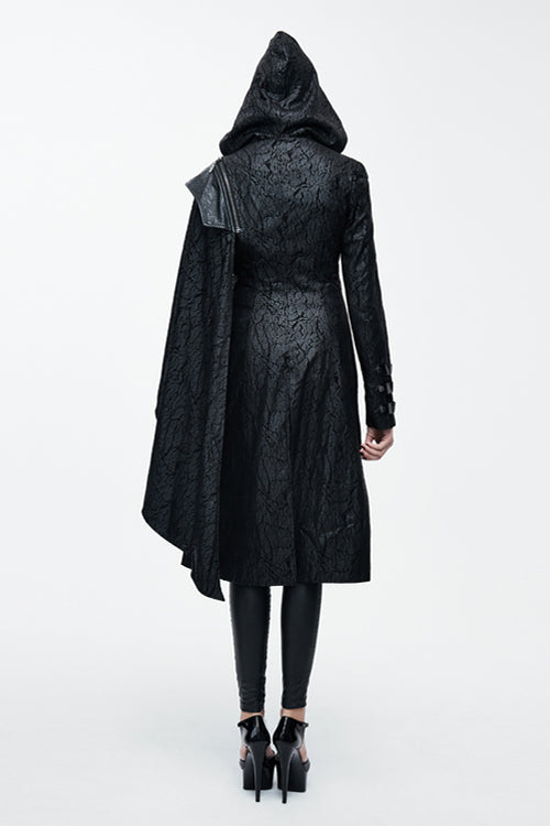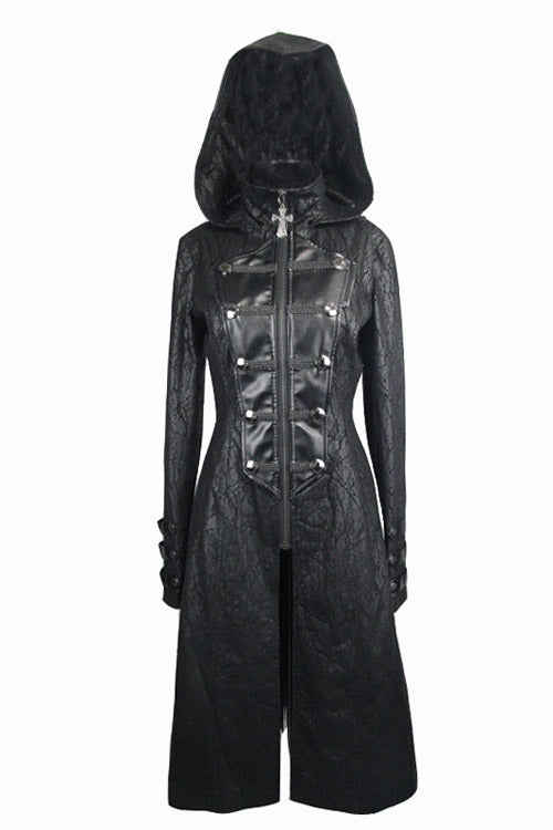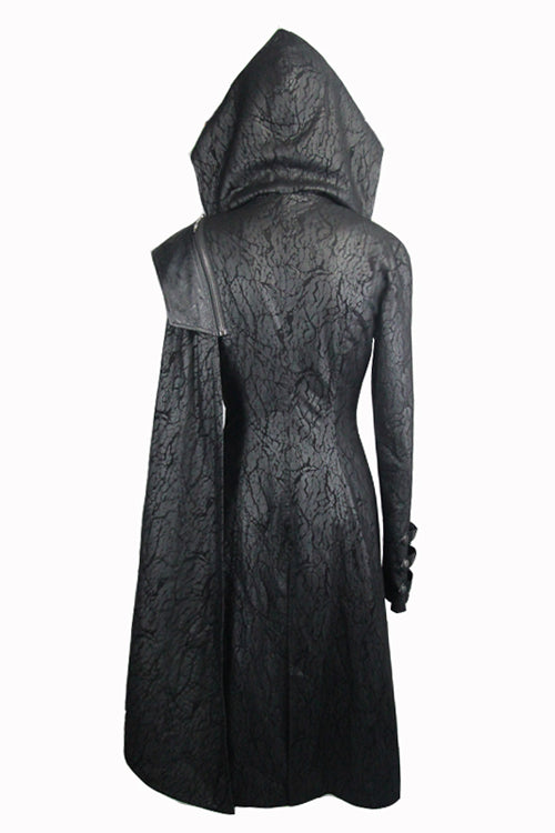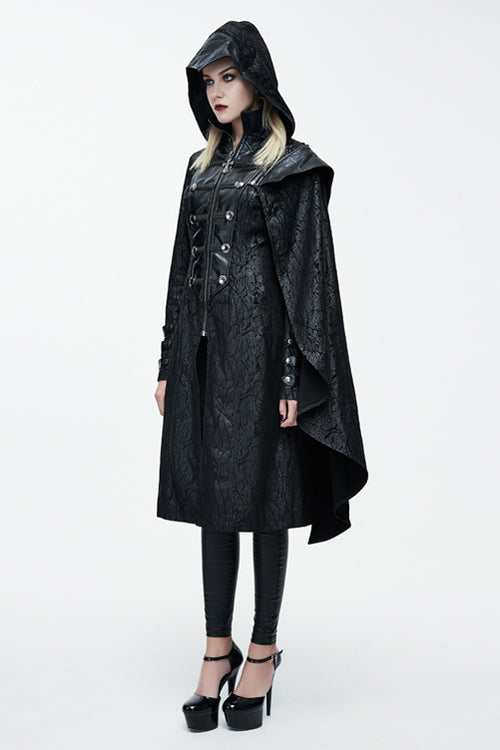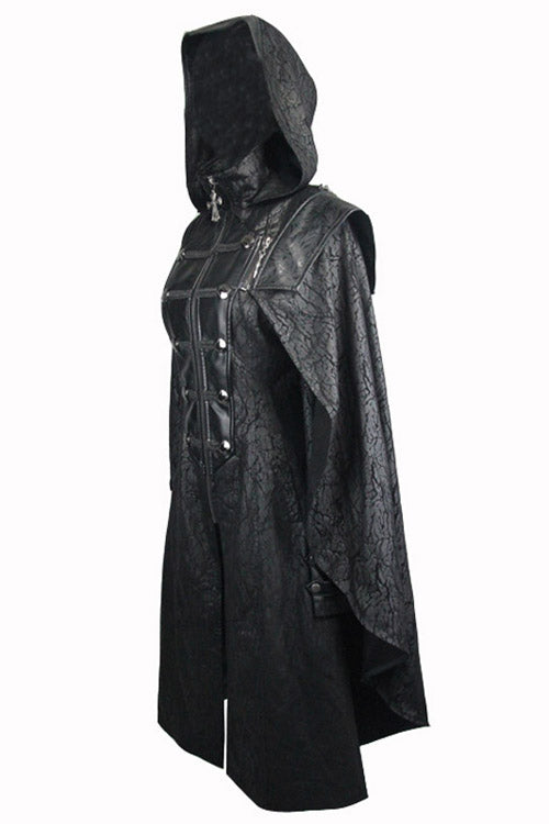 The main fabric is made of tree patterned glued Suede fabric. The collar is made of Gothic patterned leather which is stitched with 3D braid. The left cape is connected with a zipper, which can be removed.