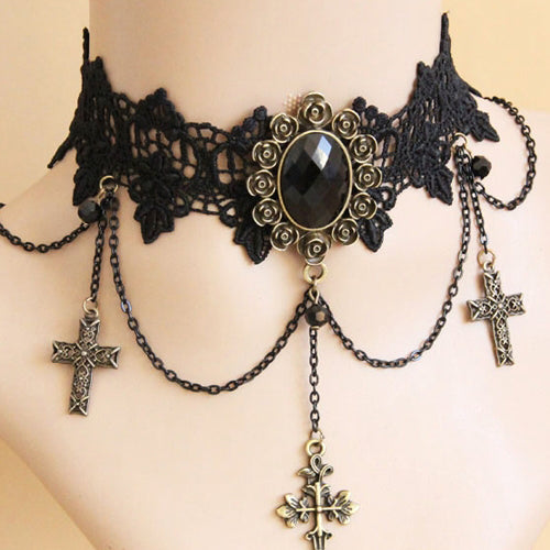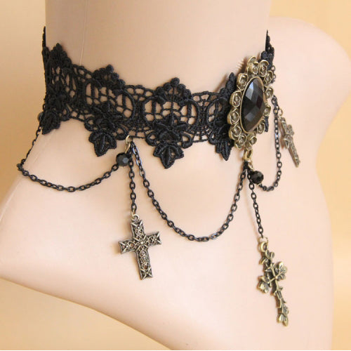 Exaggerated Cross Collar Soft Girl Harajuku Style Lace Jewelry Necklace Short Necklace Jewelry. The Width Of The Lace Is About 4.4CM. The Length Of The Lace At The Front Of The Normal Size Of The Necklace Is About 28CM, Including The Two Metal Pieces That Clamp The Lace, The Back Is The Button And The Adjusting Chain. The Tightness Can Be Adjusted To About 30CM, And The Looseness Can Be Adjusted To About 30CM. 35CM, Manual Measurement And Production, There Is An Error Of 1 To 2CM.