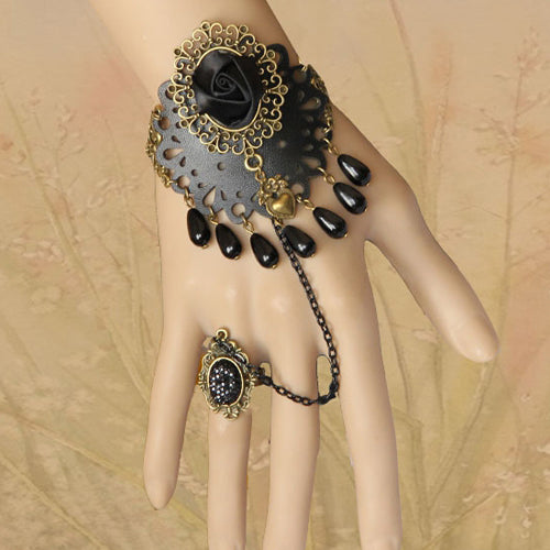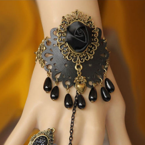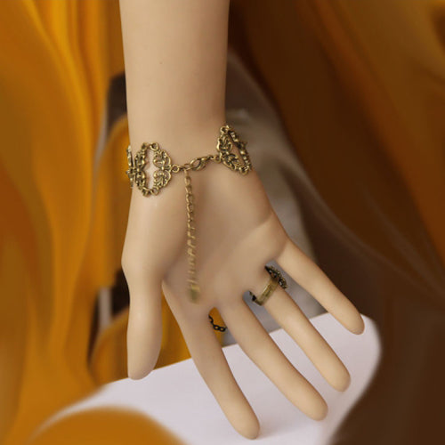 Retro Flower Pearl Bracelet Female Fashion Ring One-Piece Chain Prom Jewelry