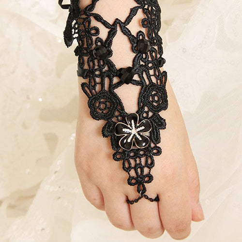 Vintage Black Long Lace Flower Bracelet