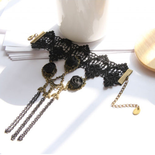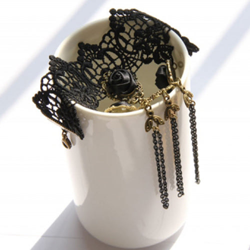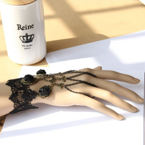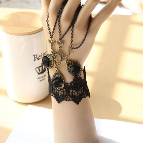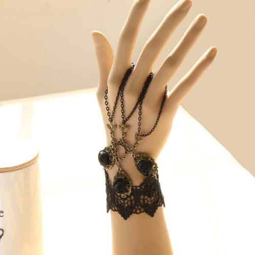 Retro Gothic Fashion Lace Female Bracelet Ring One Chain